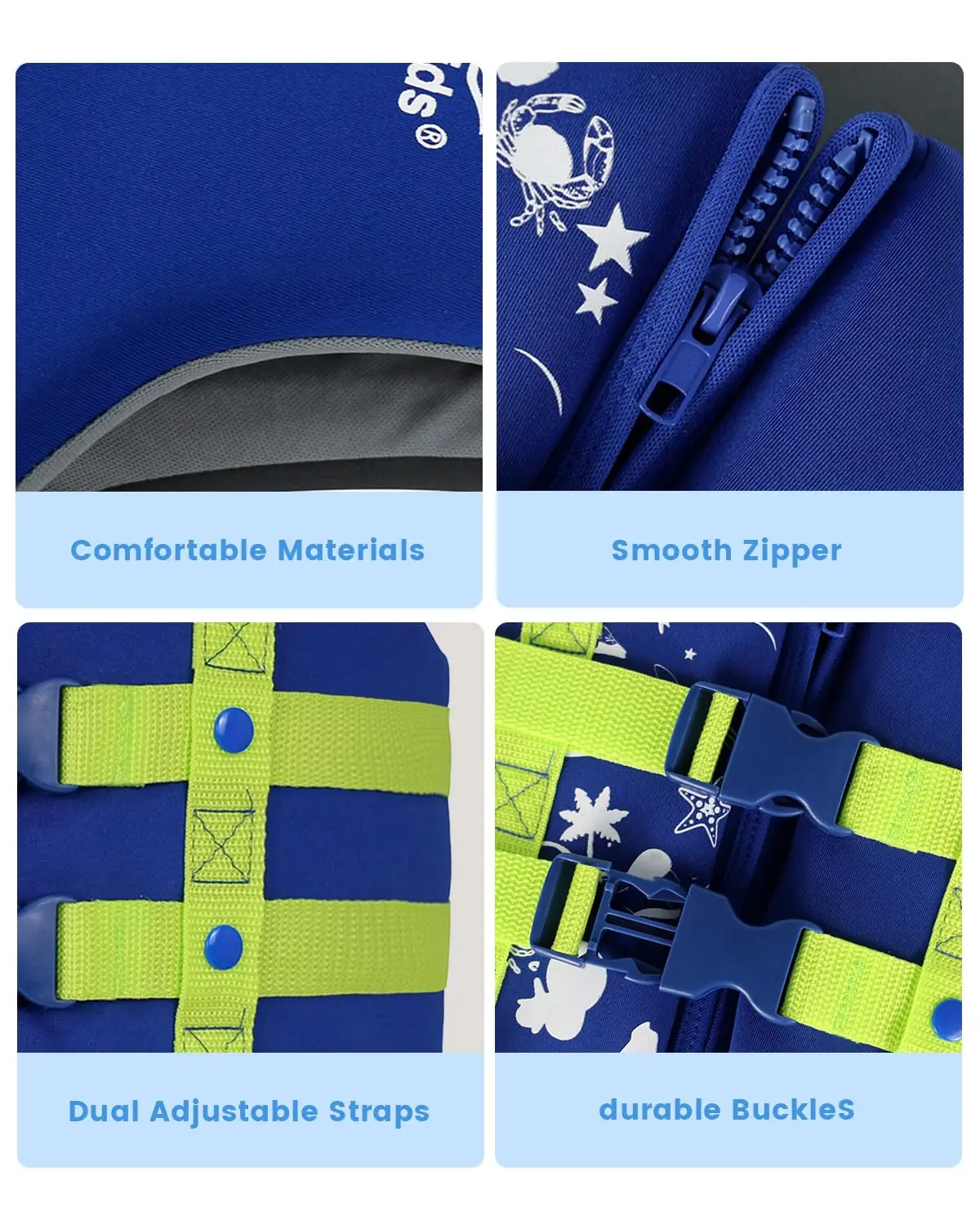 2)DURABLE MATERIALS: The kids swim vest is made of durable neoprene and EPE polyethylene foam, which is more comfortable, soft, and more lighter.