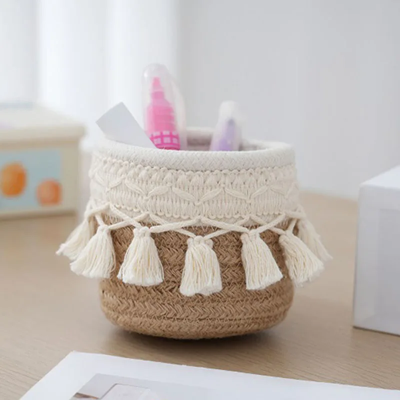 Handmade Woven Cotton Rope Woven Storage Basket Desktop Organizer Sundries Toys Comestics Keys Snacks Box Sundries Organizer 6