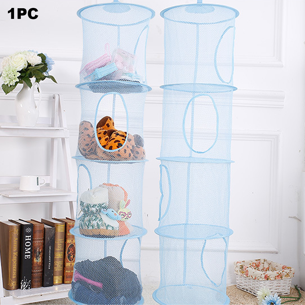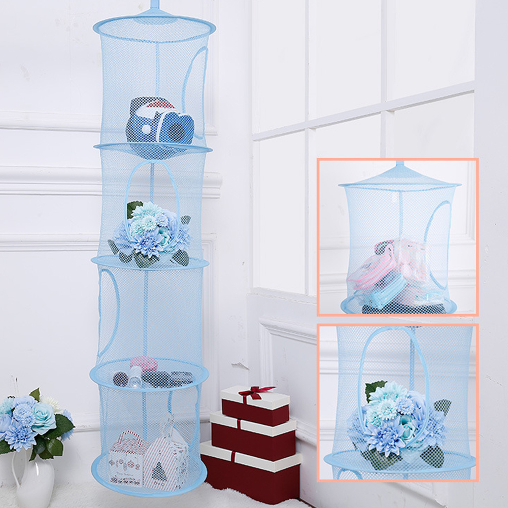 Hanging Storage Net Hanging Toy Storage 4 Tier Mesh Hanging Storage Basket Foldable Space Saving Organizer for Clothes Sundries