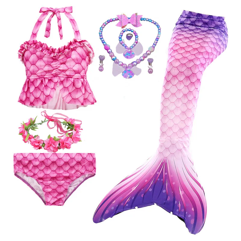 Children Mermaid Swimwear Girls Pink Blue Bikini Set Kids Swimsuit Cosplay Mermaid Tail Costume for Swimming