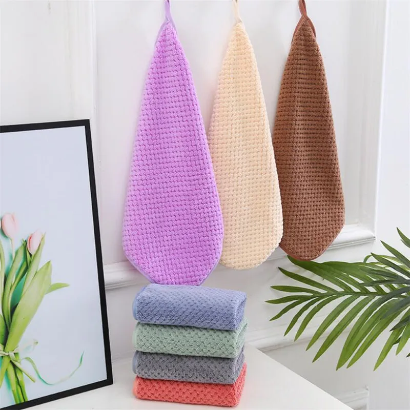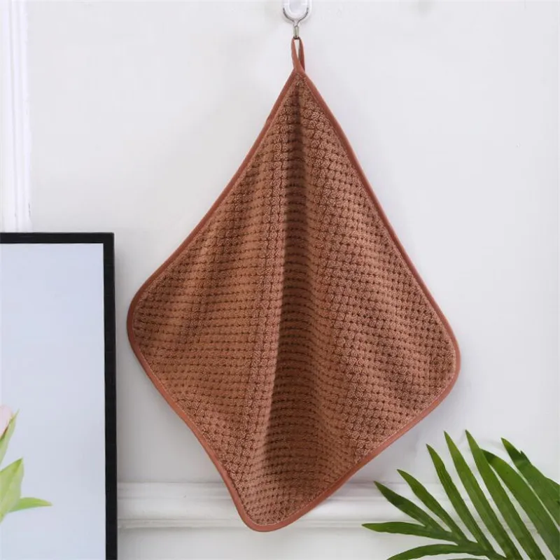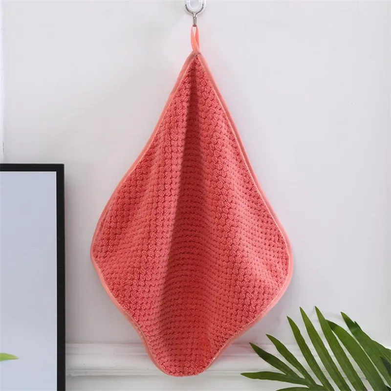 High Density Small Hand Towel 30x30cm Pineapple Hanging Kitchen Cleaning Towel Handkerchief Solid Color Washing Cleaning Towel 7 Colors