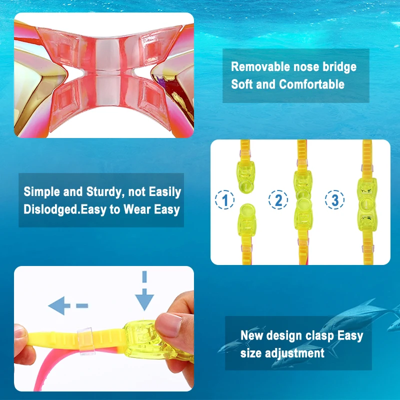 JSJM Professional Colorful Children Silicone Swimming Goggles Anti Fog UV Swimming Glasses Waterproof Silicone Swim Eyewear Kids 3