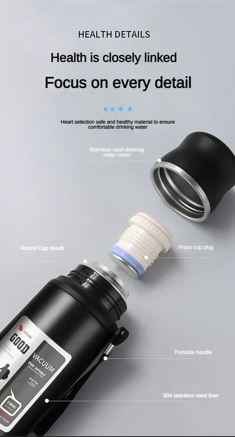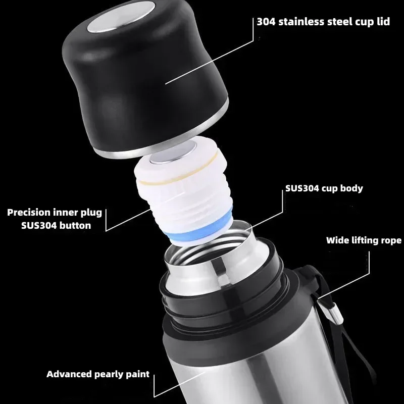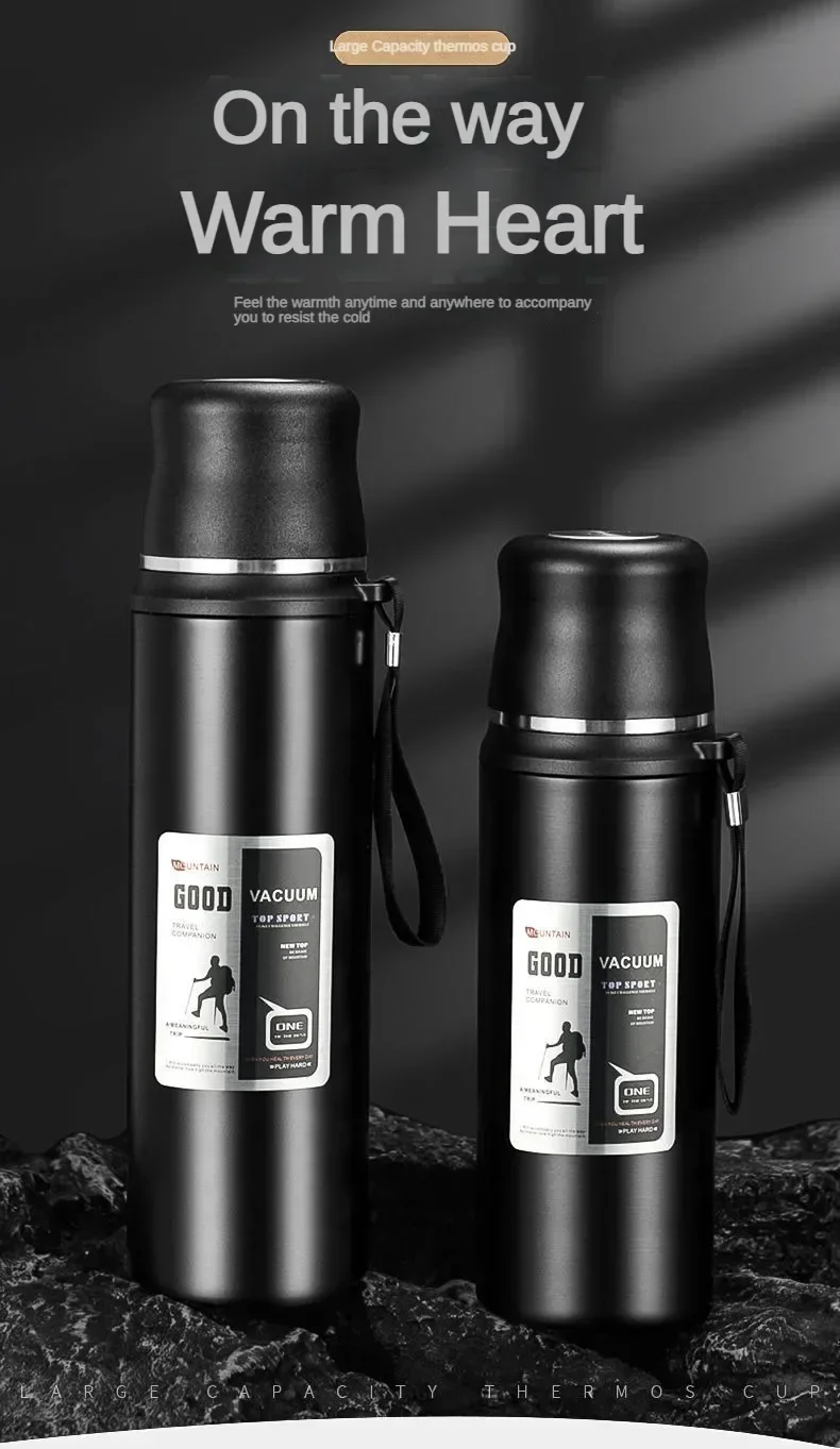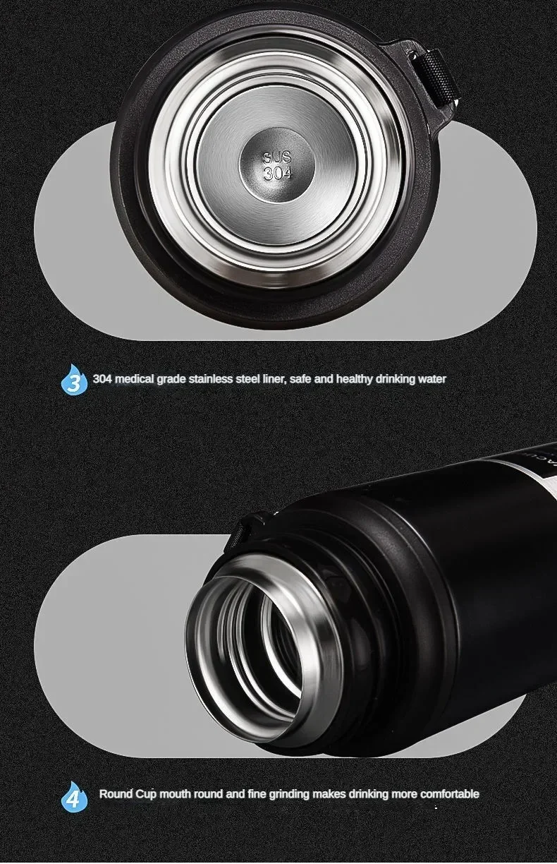Large Capacity Stainless Steel Water Bottle With Lid Cup Coffee Vacuum Flask Outdoor Travel Thermal Cup Leakproof Thermos Bottle
