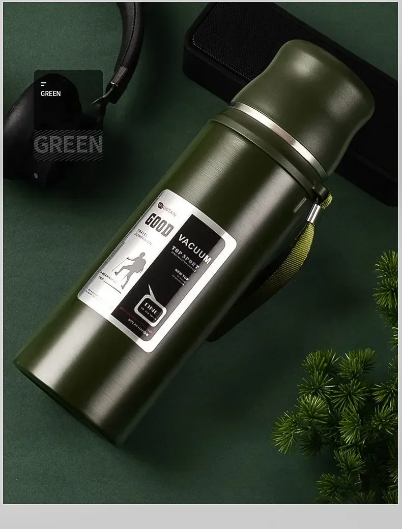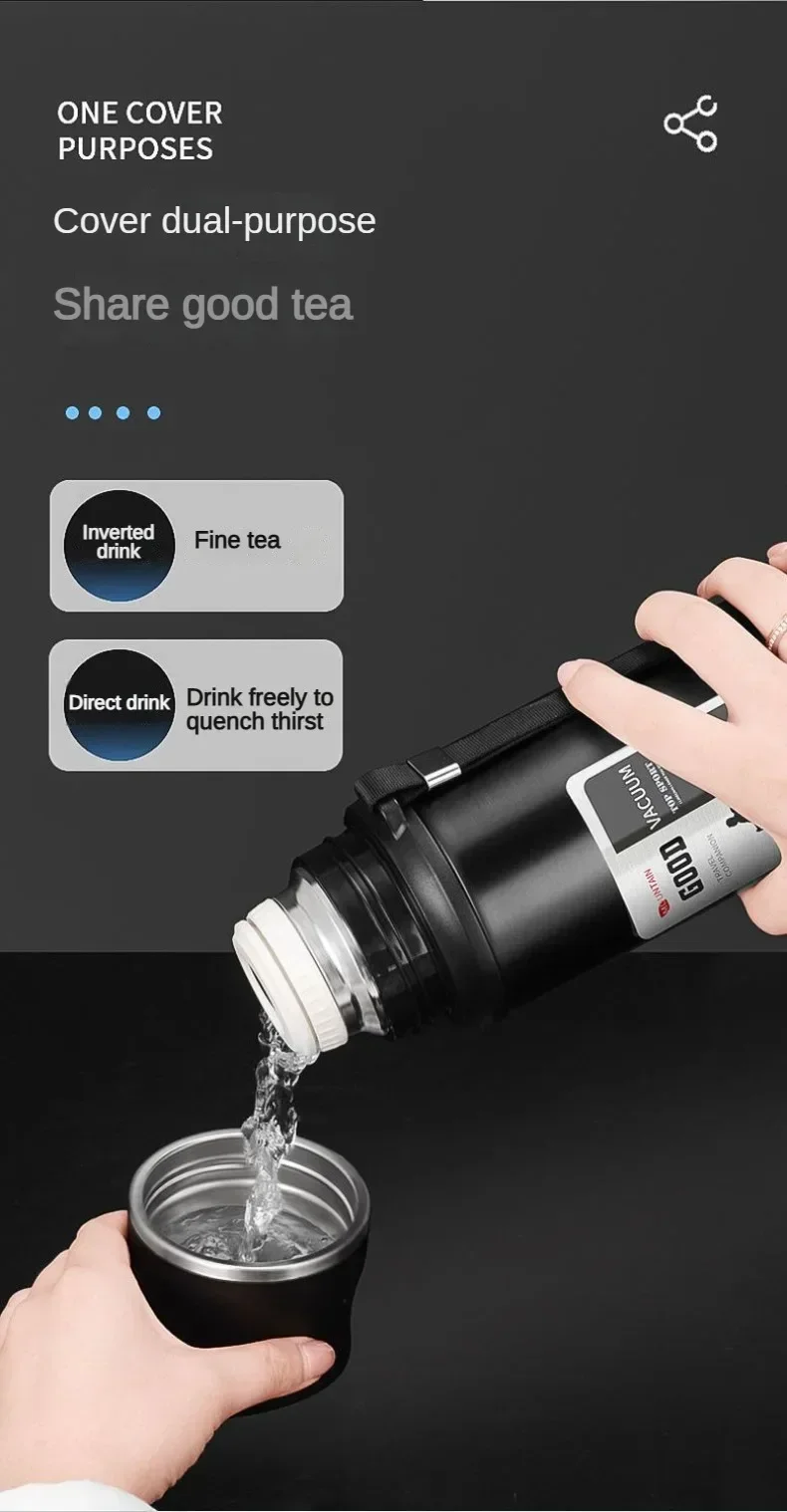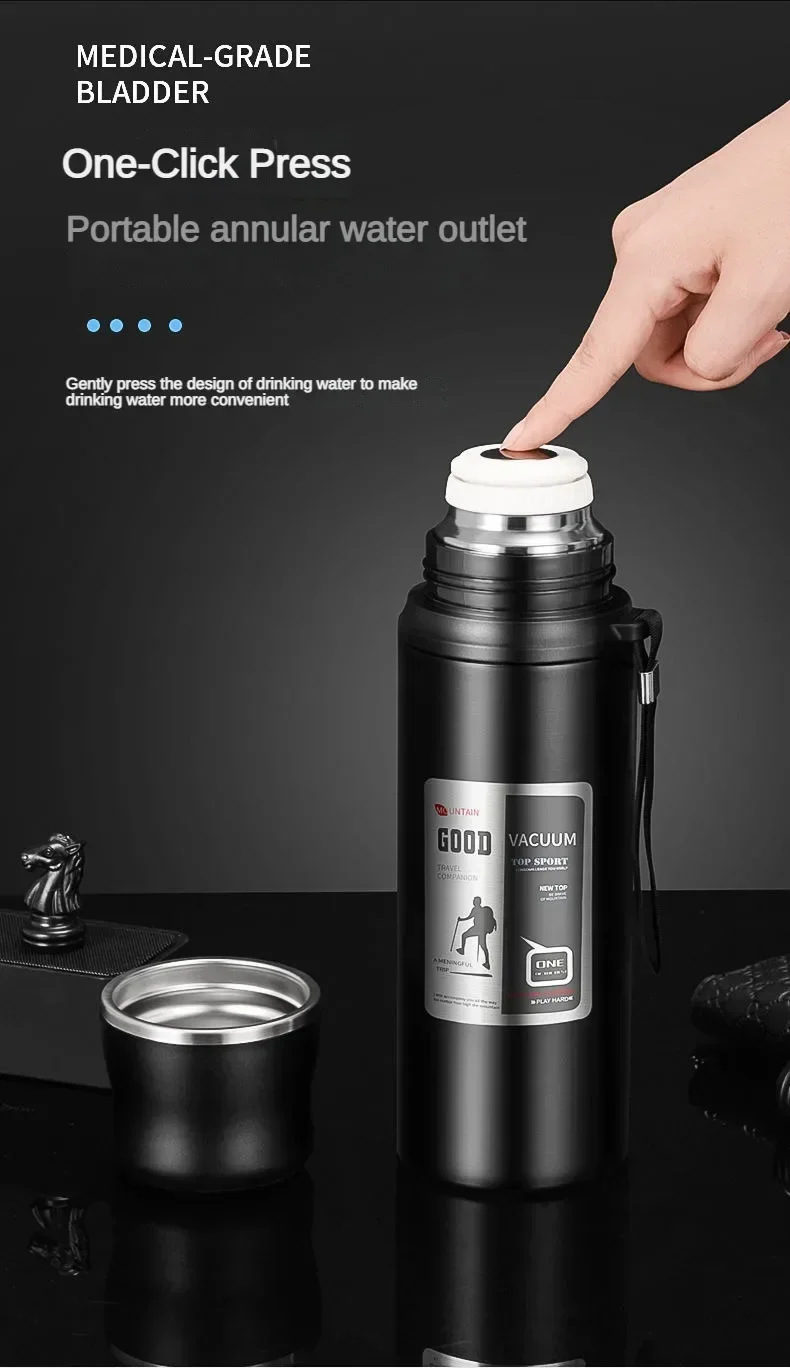 Large Capacity Stainless Steel Water Bottle With Lid Cup Coffee Vacuum Flask Outdoor Travel Thermal Cup Leakproof Thermos Bottle