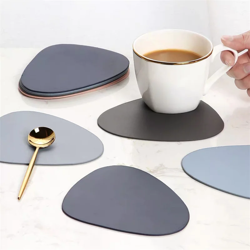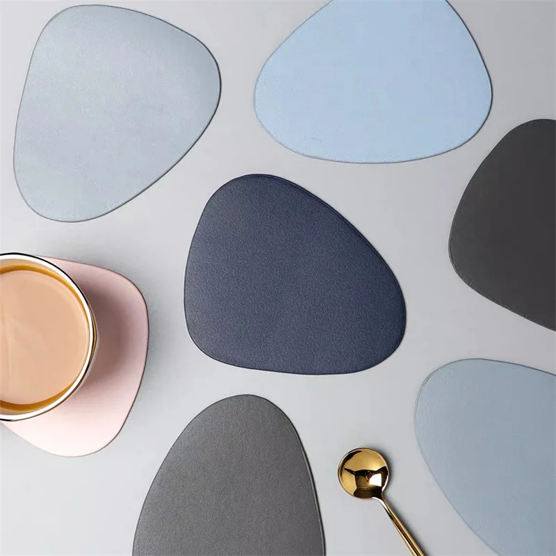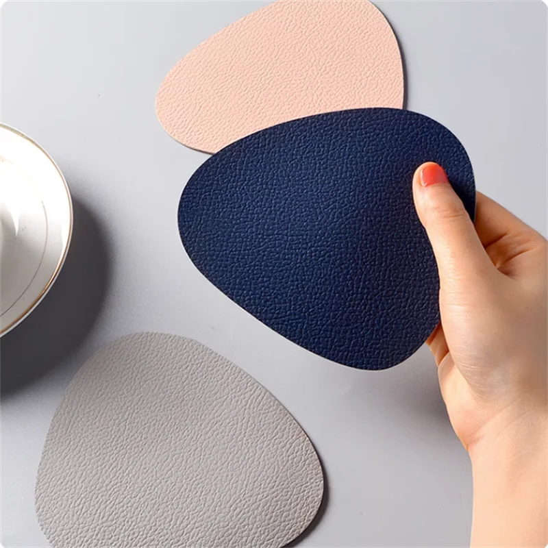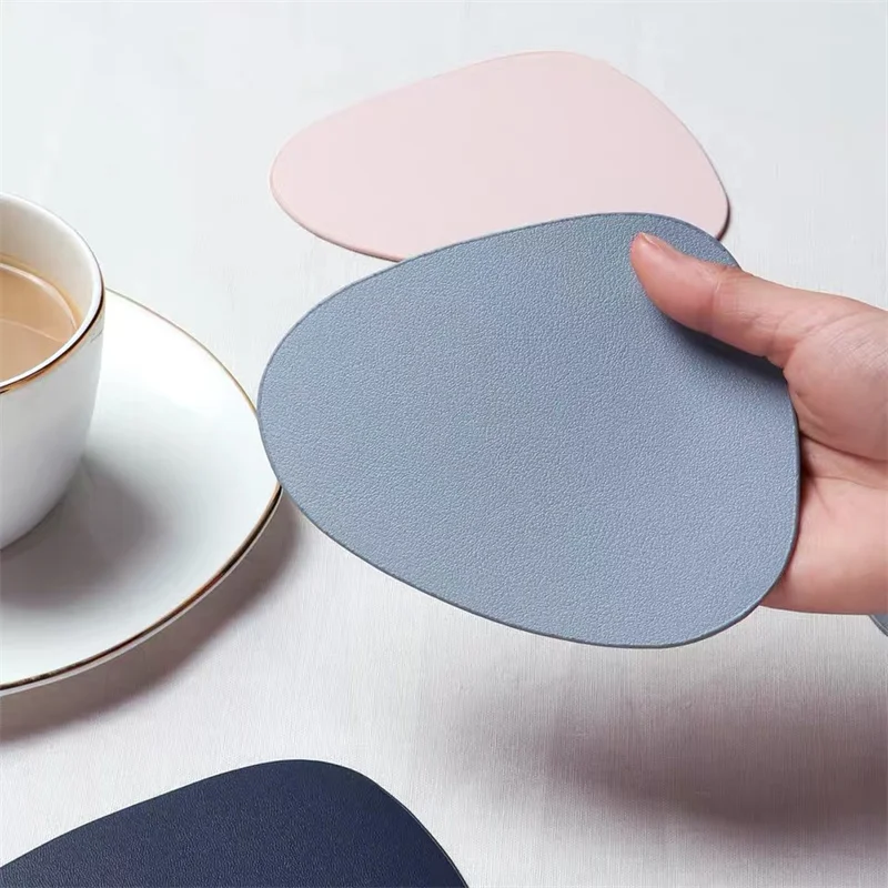 Leather Droplet Shape Mat Coaster Solid Color Heat Resistant Coffee Placemat Minimalist Non-slip Table Mat Kitchen Accessories