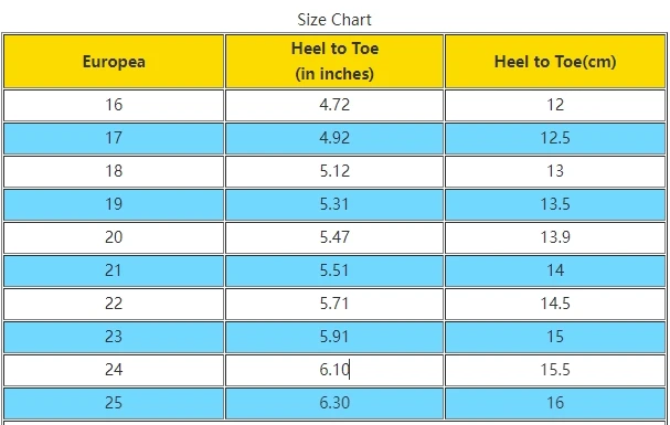 Affected by the region, the physical development of the same age in each country may be different,please choose the size according to the specific feet length