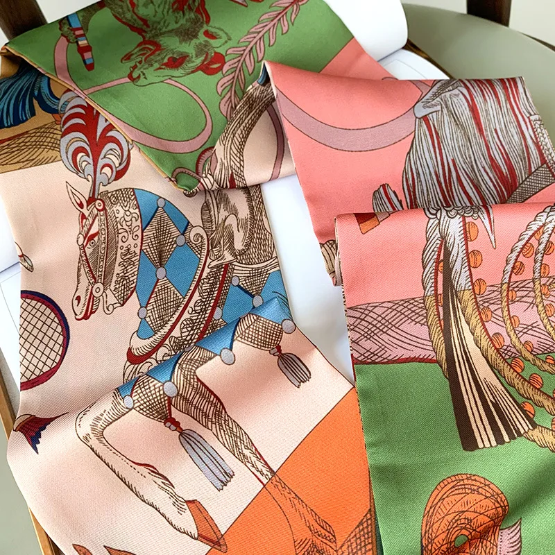 Be the first to review “Long Silk Scarf Bag Tie Lady Neck Skinny Scarves Hairband Foulard Horse Print Brand Lady Neckerchief Ribbon 2021 Spring New” Cancel reply