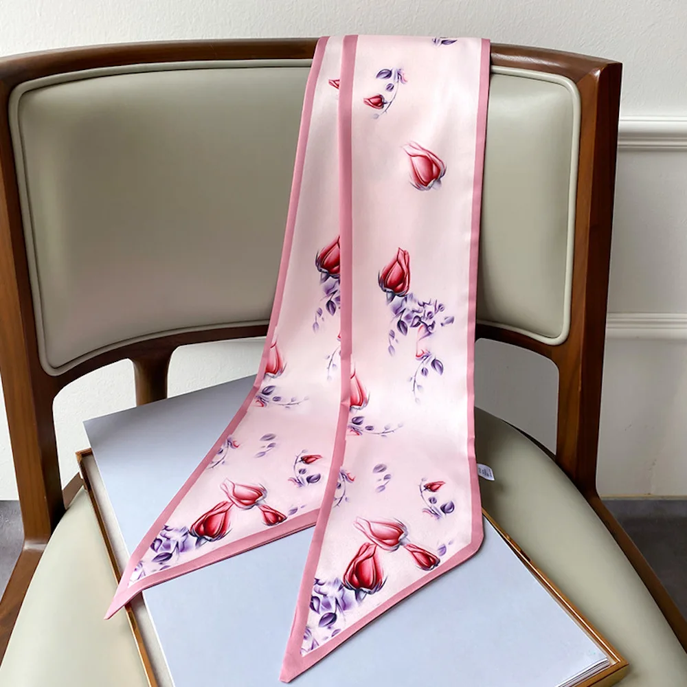 60*60cm Luxury Floral Silk Square Scarf Women Soft Satin Kerchief Hairband Neckerchief Head Hijab Headband Foulard Bag Ribbon 1