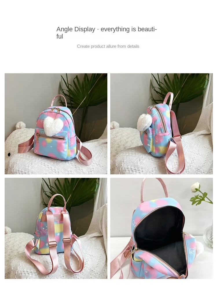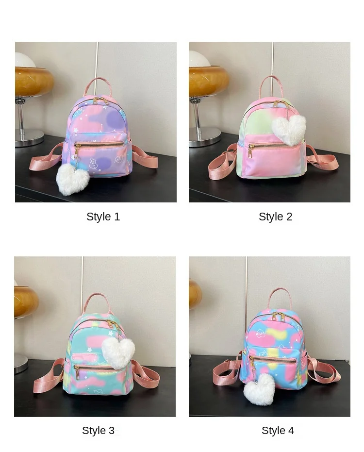 Mini Backpack Women Nylon Cute Small Shopper Handbag Multicolor Book Bags with Heart Pendant Girls Fashion Shoulder Bag 4