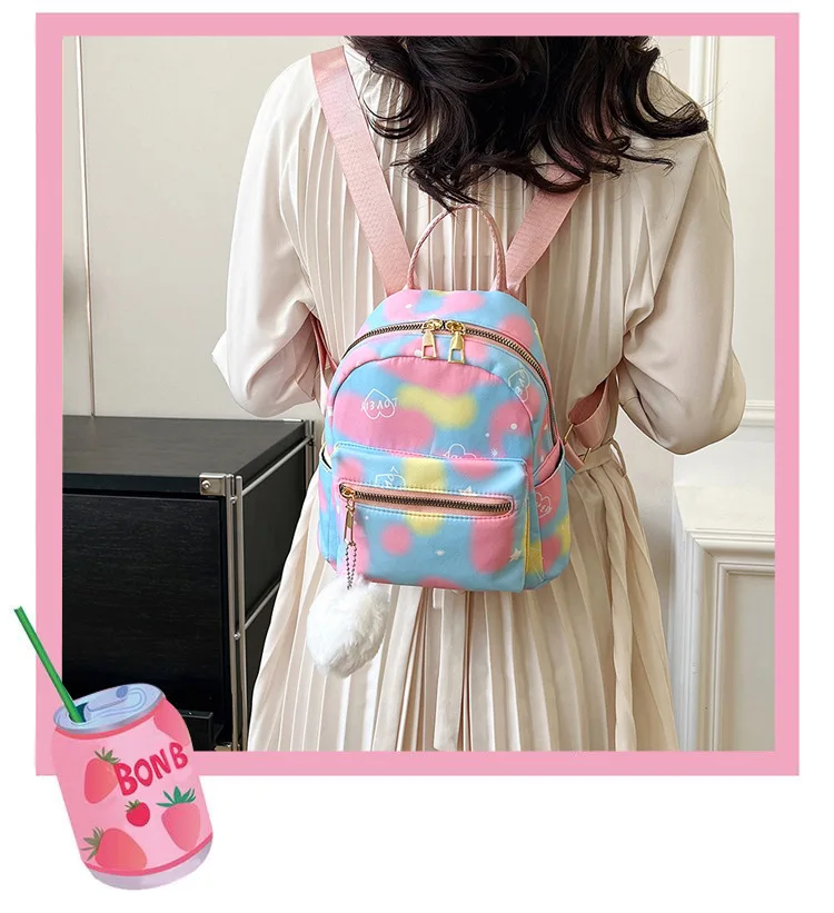 Mini Backpack Women Nylon Cute Small Shopper Handbag Multicolor Book Bags with Heart Pendant Girls Fashion Shoulder Bag 6