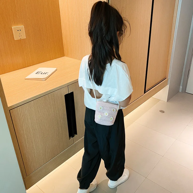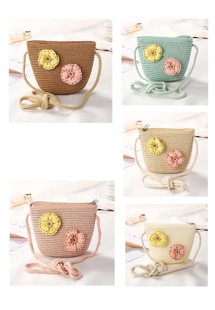 New 2022 Summer Children Girls Shoulder Bag Daisy Flower Straw Bag Messenger Bag Kids Keys Coin Purse Cute Princess Mini Handbag