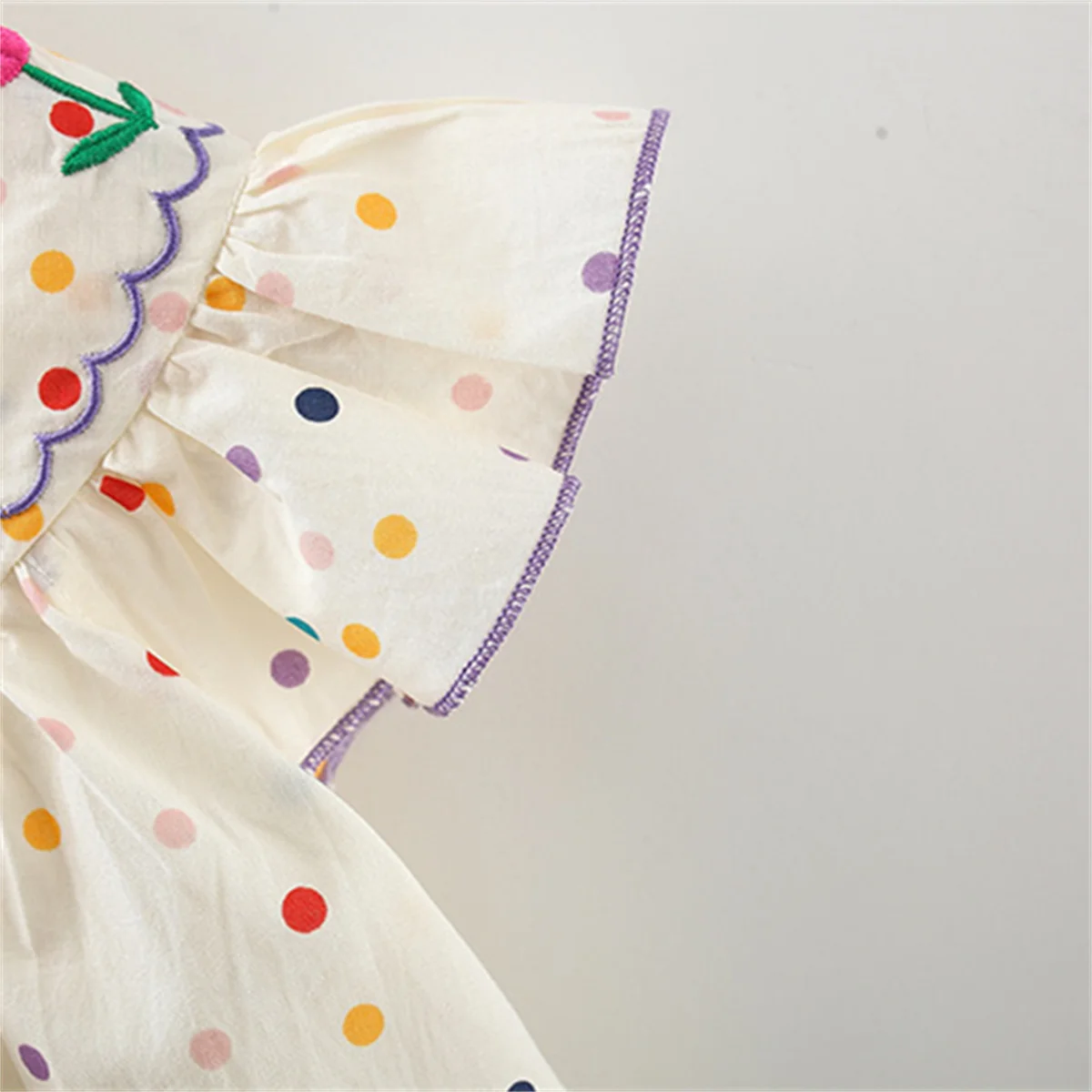New Cute Girl’S Dress Sweet Rose Embroidered Small Round Dots Korean Version Loose Bubble Sleeve Cotton Beach Skirt