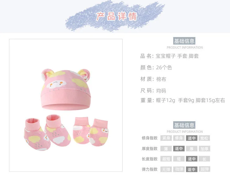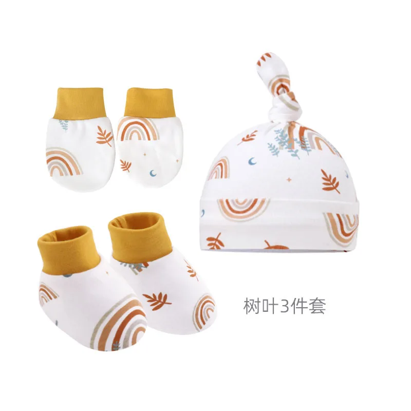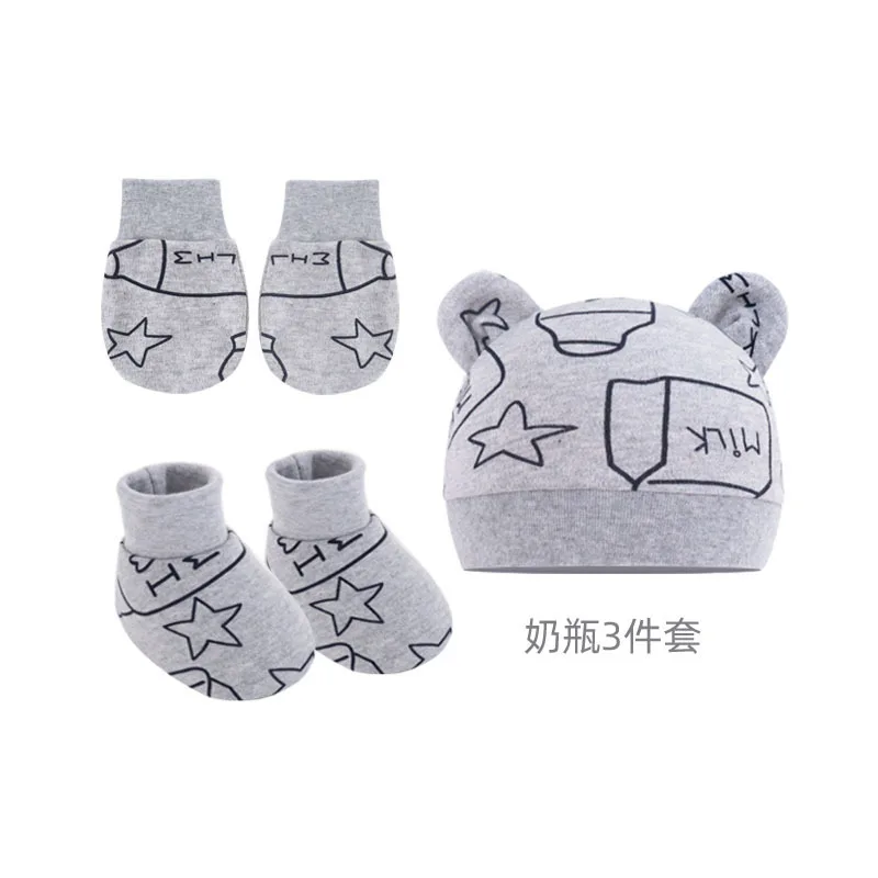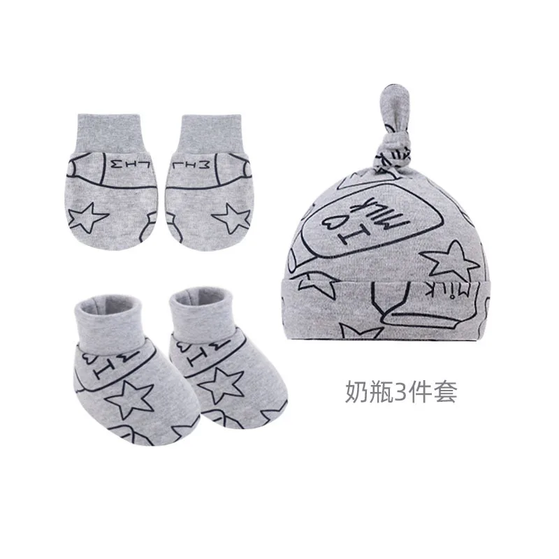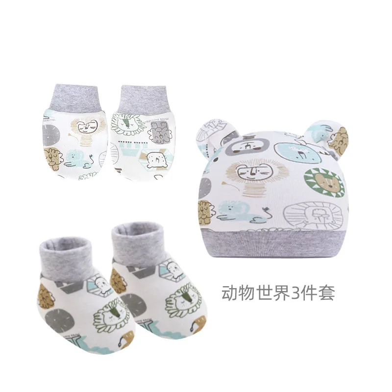 3Pcs/set Newborn Baby Hat Anti Scratch Gloves Protective Foot Cover Anti-grab Infant Mittens Cap & Socks Set 066B 1