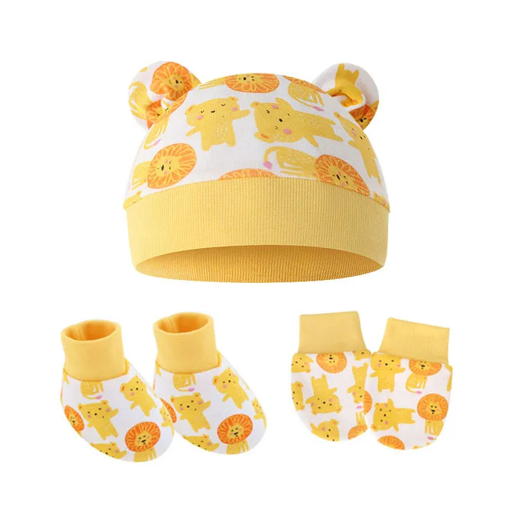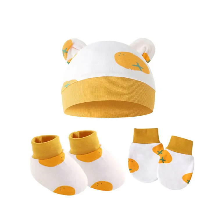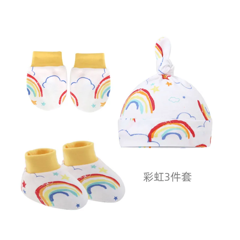 3Pcs/set Newborn Baby Hat Anti Scratch Gloves Protective Foot Cover Anti-grab Infant Mittens Cap & Socks Set 066B