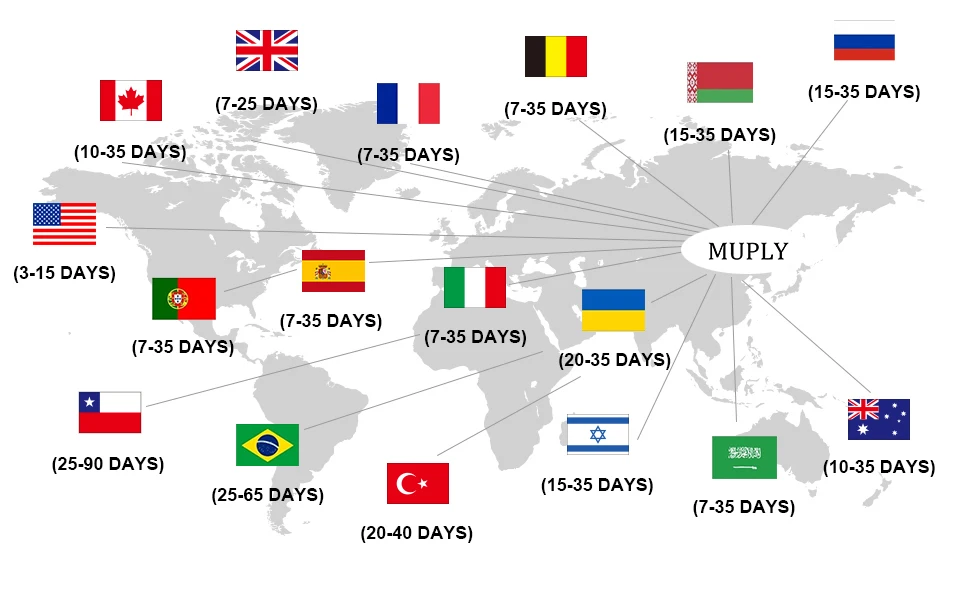 (3) About 10 to 45 business days to: all other countries;