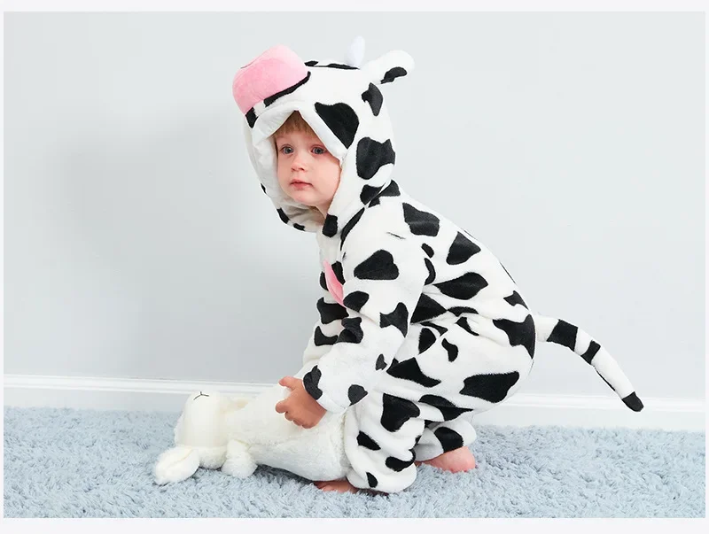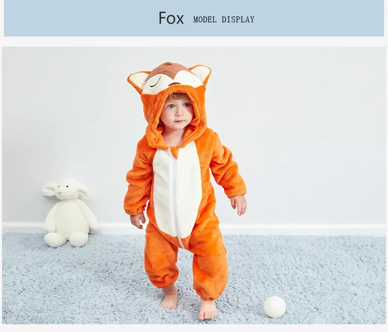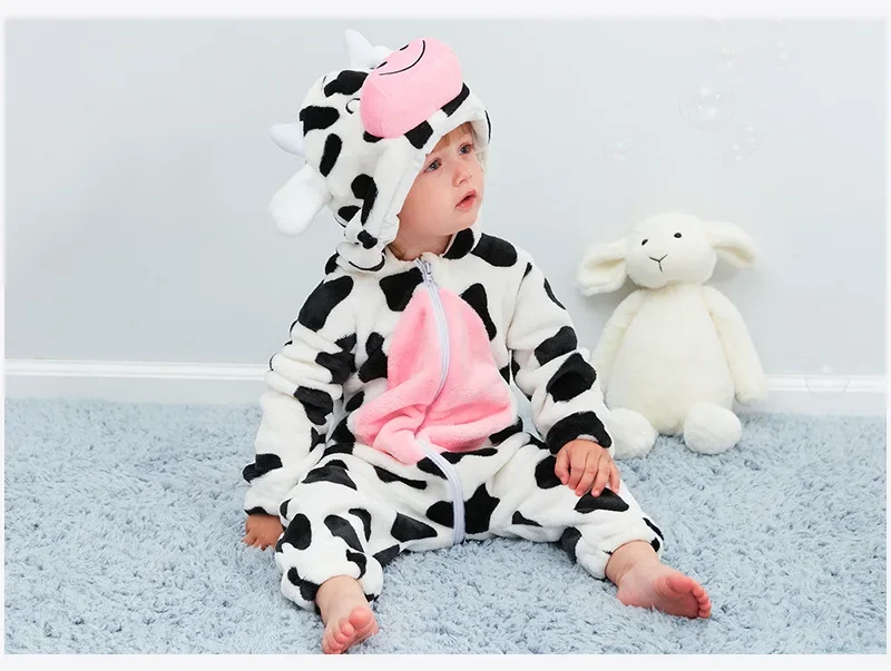 Newborn Baby Boy Clothing Stitch Animal Cartoon Hooded Jumpsuits Winter Baby Pajamas Onesies Kids Sleepwear Newborn Baby Pyjamas 5