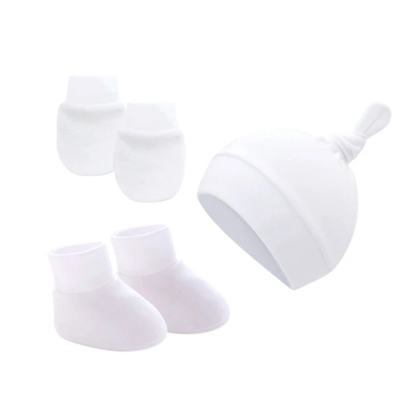 3pcs/set Cotton Newborn Cap with Anti Scratch Mittens and Foot Cover Infant Warm Headwear Baby Gloves with Socks Set 17 ₪ – 21 ₪