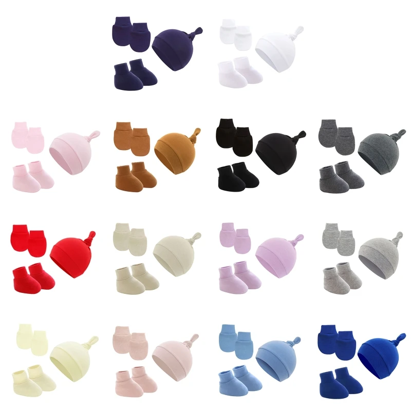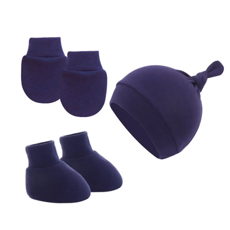 Newborn Hat+Gloves+Socks Set for Baby Boy&Girl Cotton Fall Casual Photography Props Soft Headwear Infant Nightcap Fashion 1