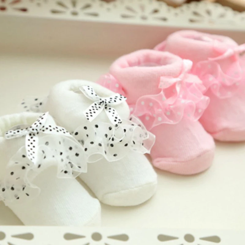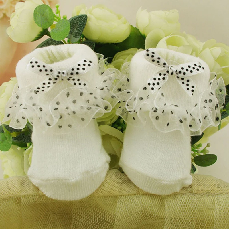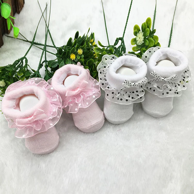 Newborn Baby Socks For Girls Cotton Lace Infant Girls Sock Spring Princess Bow Toddler Baby Girls Socks 0-6M 2