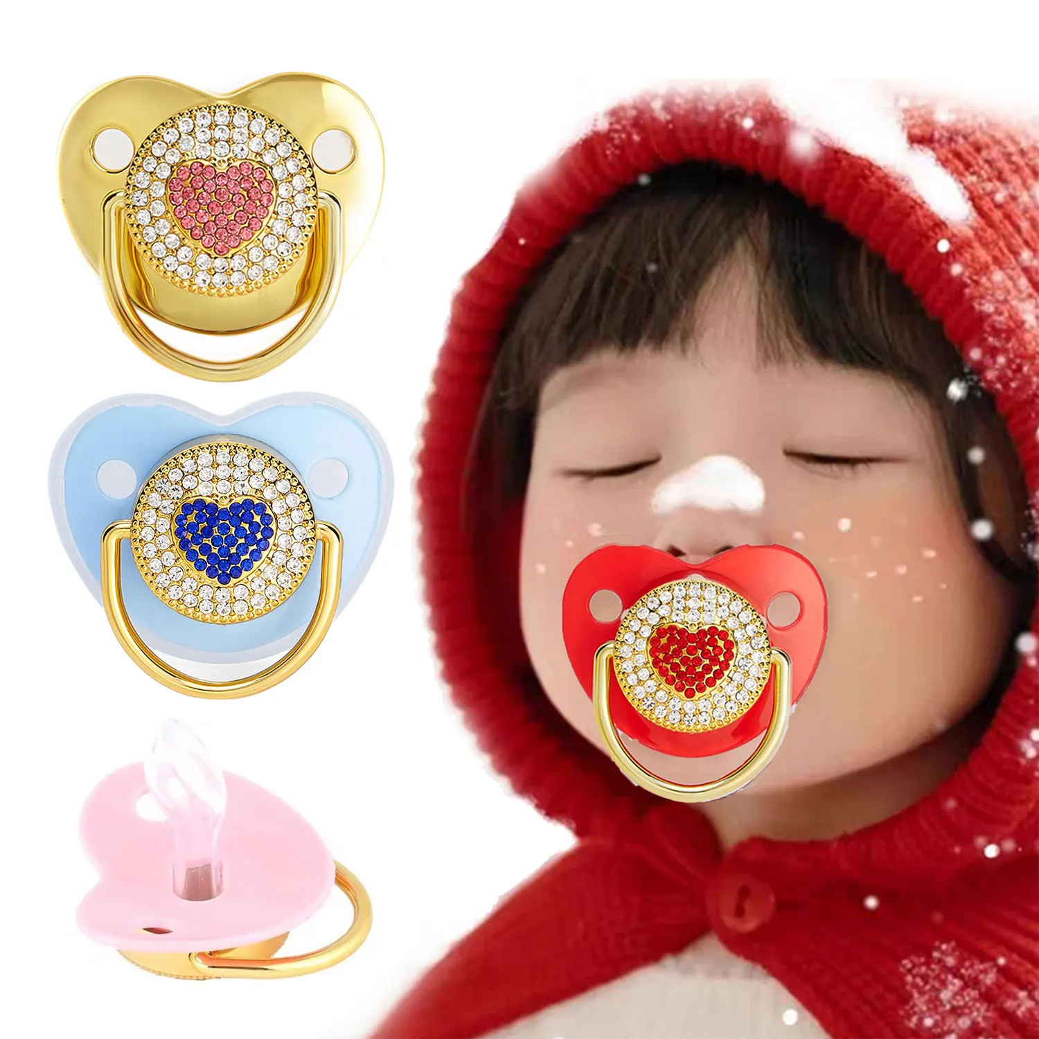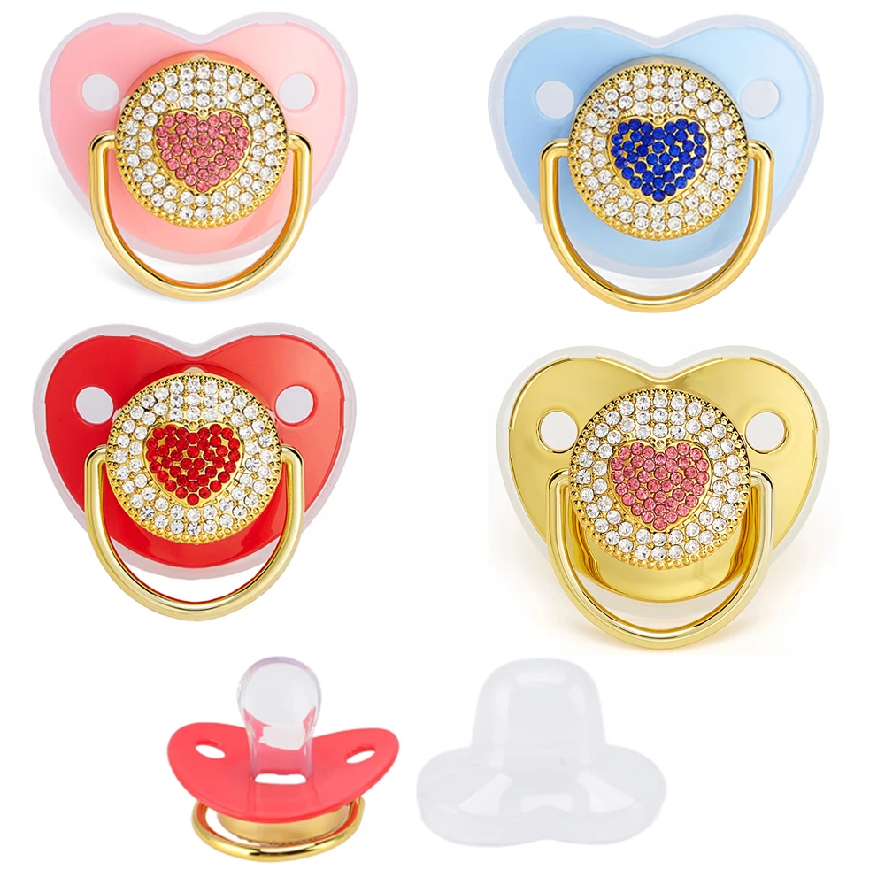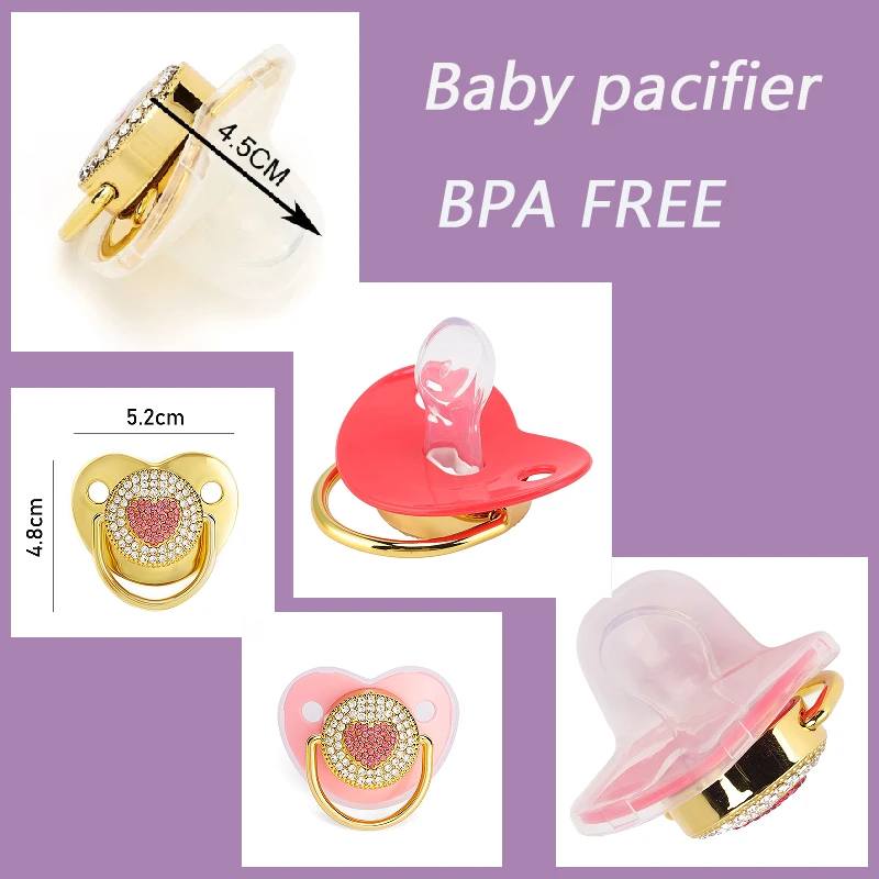 -Luxurious and exquisite heart-shaped diamond baby silicone pacifier keeps babies quiet and completes shooting tasks smoothly. It can also be used as a shooting prop to leave more beautiful moments for babies.