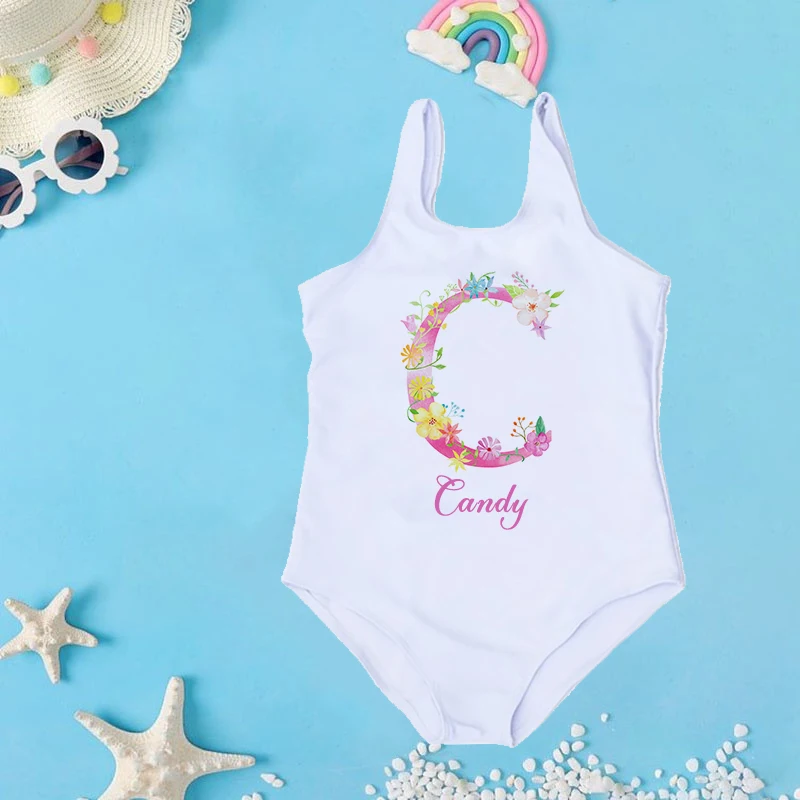 Personalized Custom Initial Name Baby Girl Swimsuit 2-7 Year One Piece Swimwear Children's Beach Clothes Kid Summer Bathing Suit 1