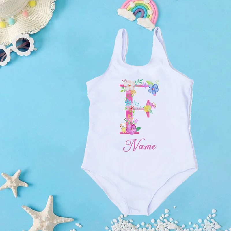 Personalized Custom Initial Name Baby Girl Swimsuit 2-7 Year One Piece Swimwear Children's Beach Clothes Kid Summer Bathing Suit 4