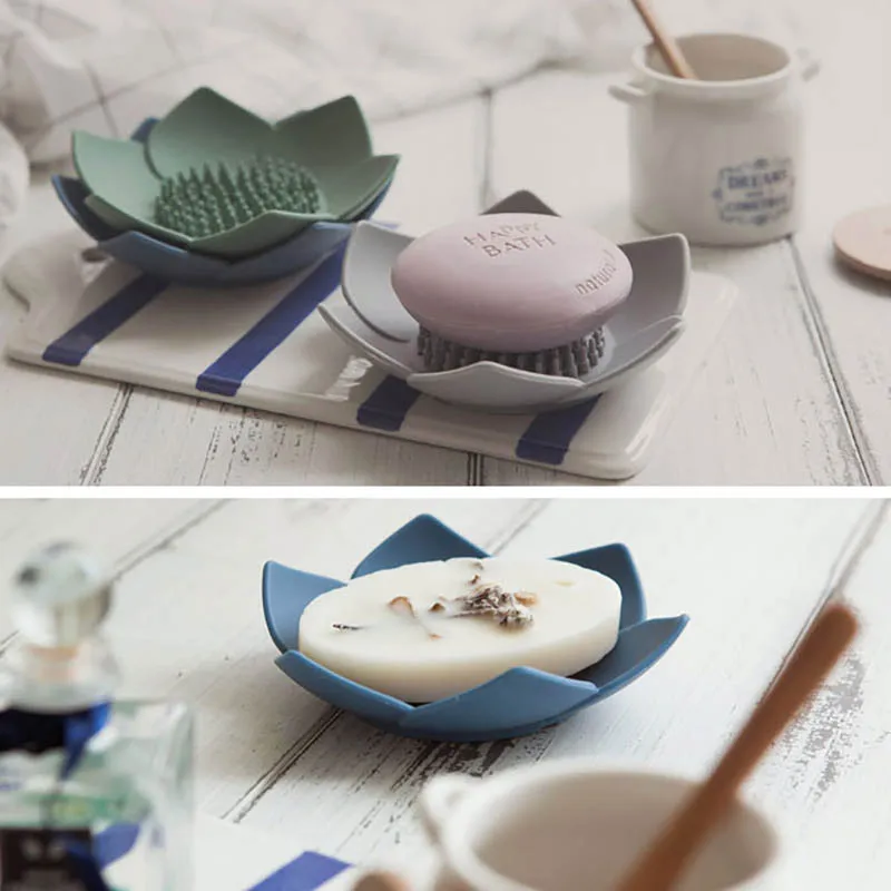 Soap Box Lotus Shape Storage Plate Tray Holder Non-slip Dish Water Draining Soap Dish Portable Holder Bathroom Accessories