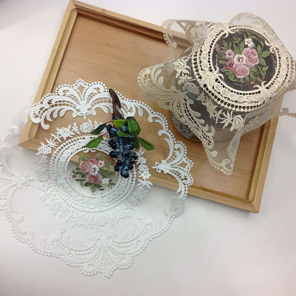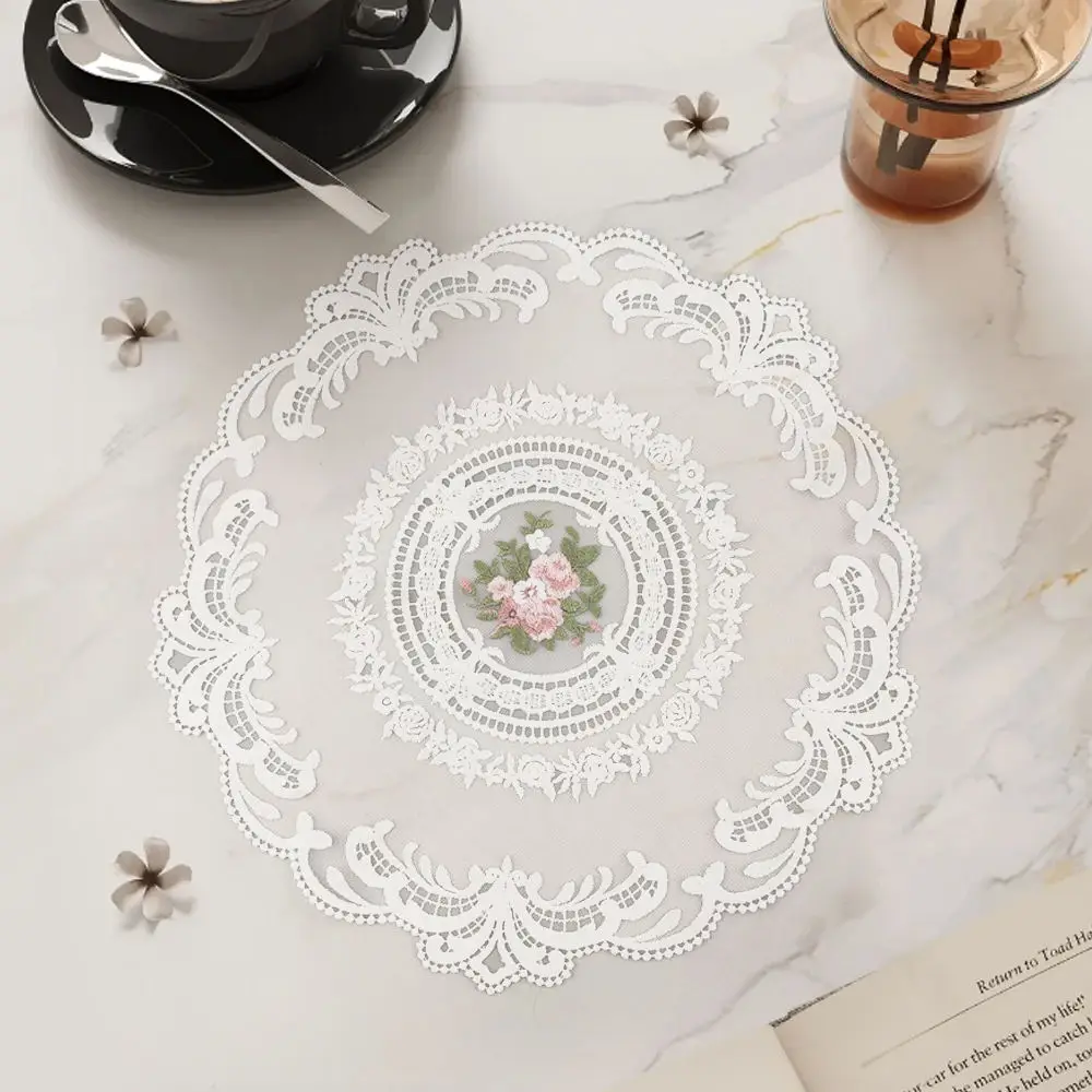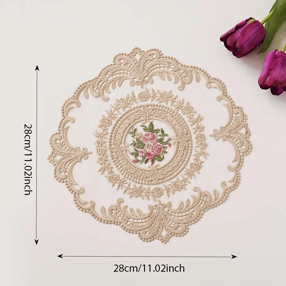 Retro Lace Placemats Handmade Embroidered Table Lace Tablecloth Pastoral Coaster Mat European Bedside Table Placemat Exquisite