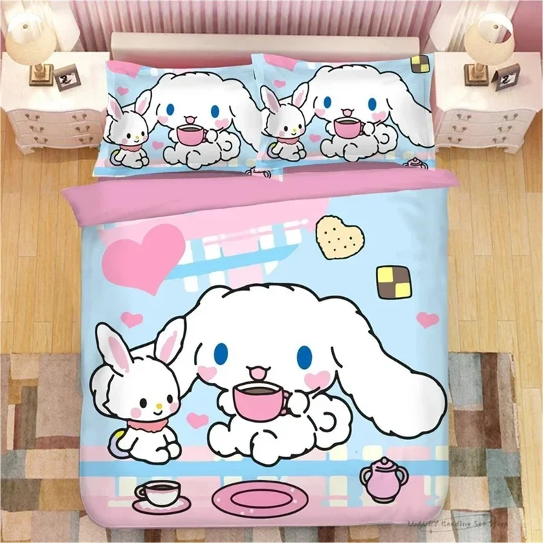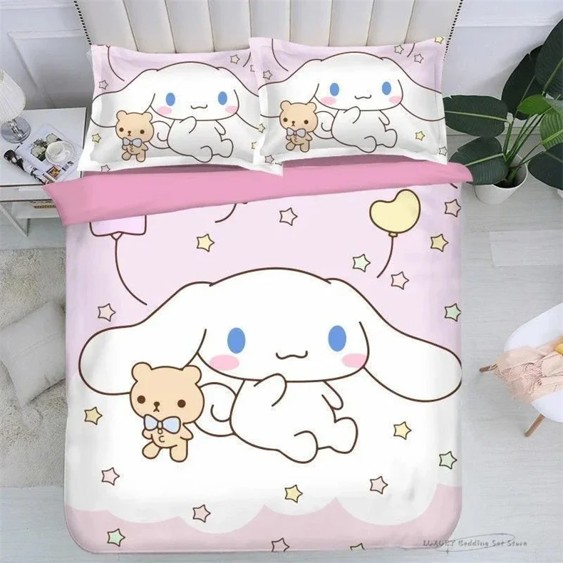 Sanrio Cinnamoroll Pink Duvet Cover Bedding Set Boys Girls Single Double King Size Quilt Anime Bedspread Home Bedroom Decoration