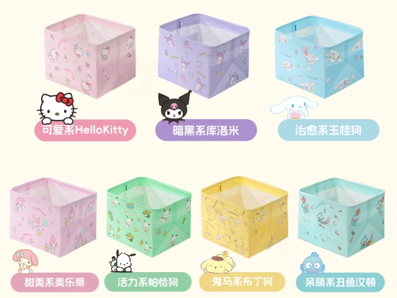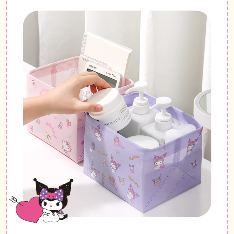 Sanrio Cute Hello Kitty Kuromi Melody Cinnamoroll Sundries Foldable Storage Box Desk Cosmetics Snack Storage Basket Organizer