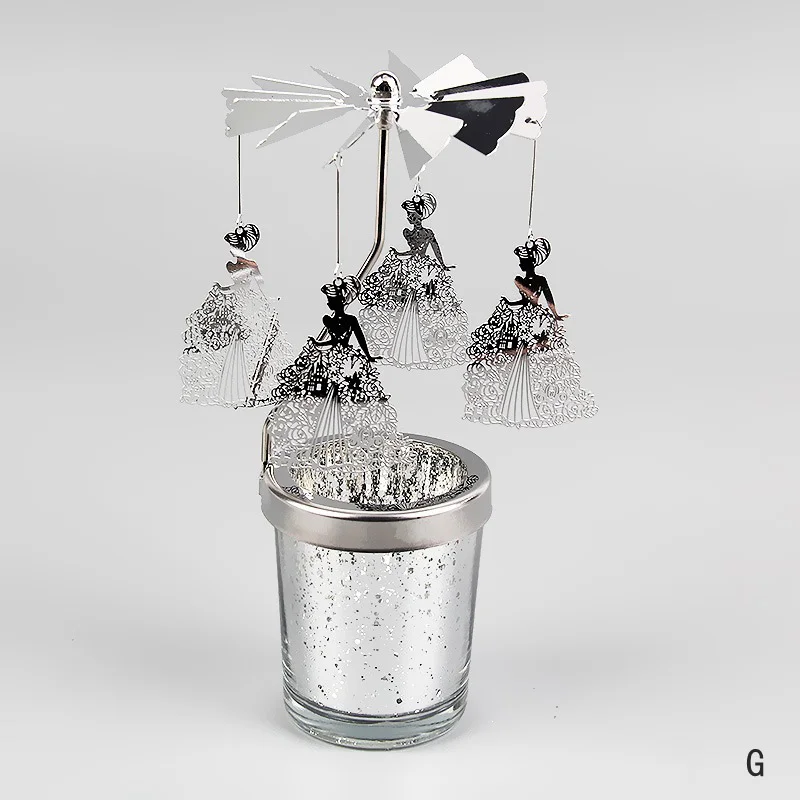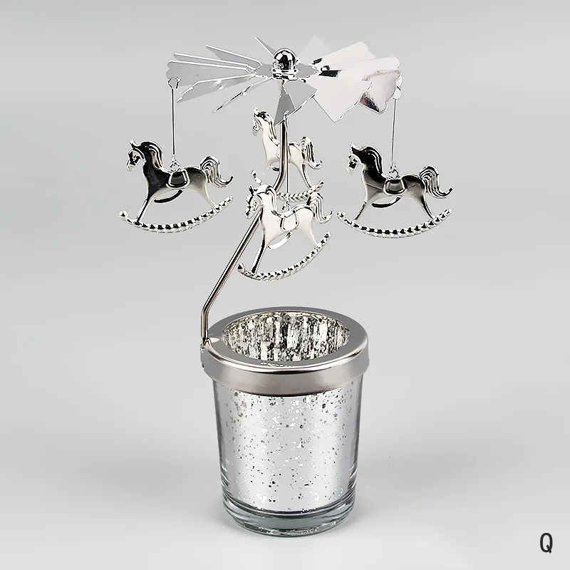 Silver Candle Holder Home Decoration Valentine's Gift Rotating Candlestick Party Decor Romantic Carousel Tea Light Candle Stand 6