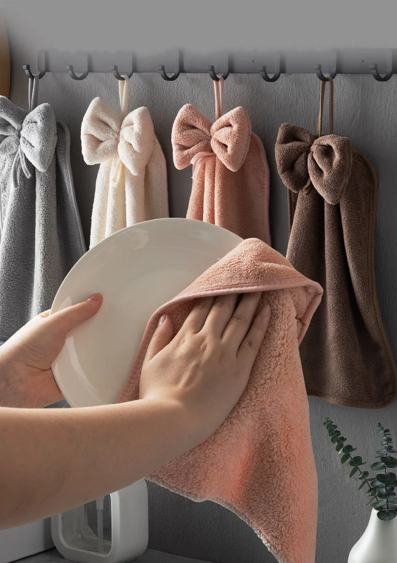 4. Easy to hang. There is a suspension hole on the top of the kitchen microfiber towel, which can be hung