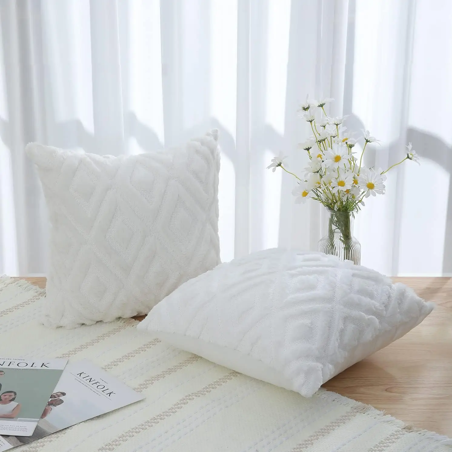 Soft Faux Fur Throw Pillow Covers 18×18 Velvet Decorative Pillow Covers Cushion Cover 45*45 Decorative Pillows for Sofa White
