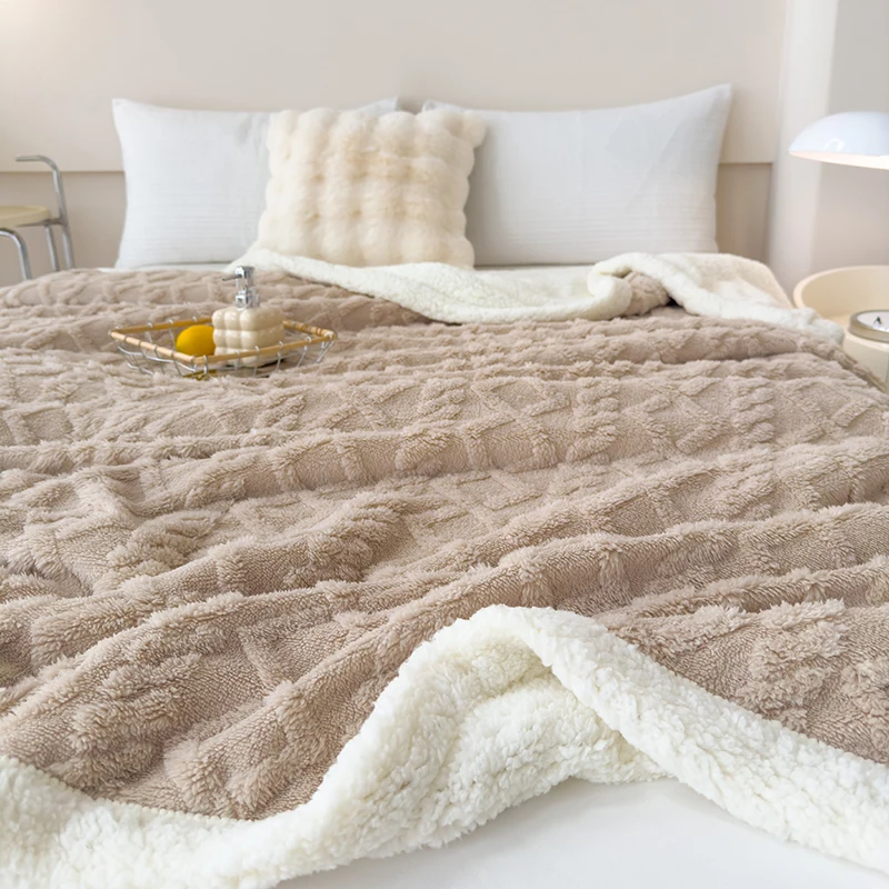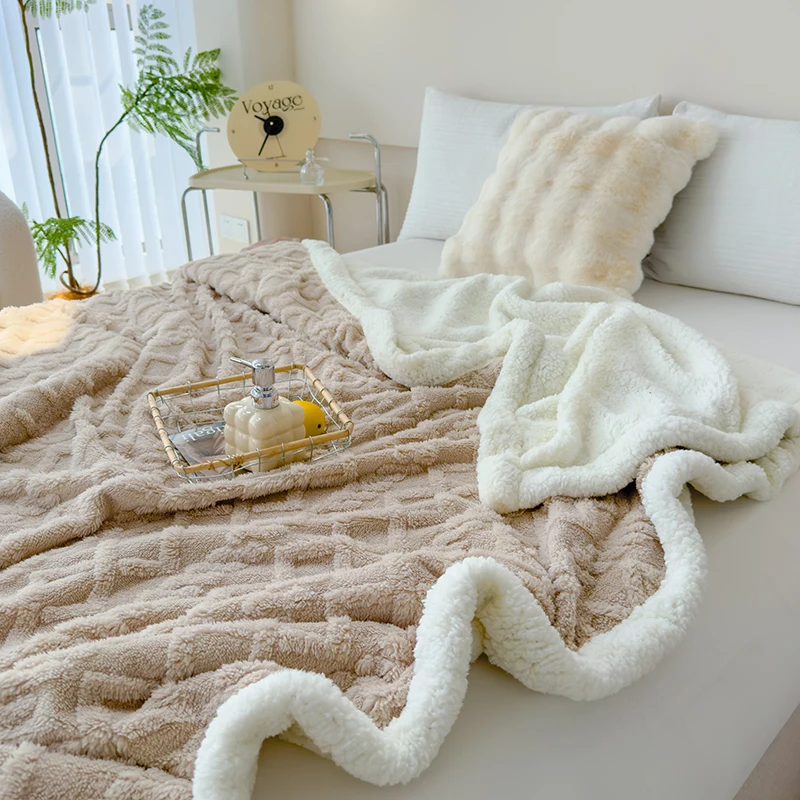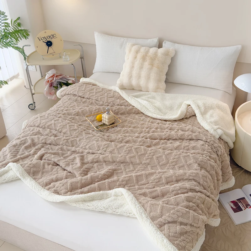 Soft Rhombus Plaid Blanket Thick Plush Wool Fleece Winter Warm Taffeta Blankets for Adults Kids Sofa Bed Cover Throw Bedspread