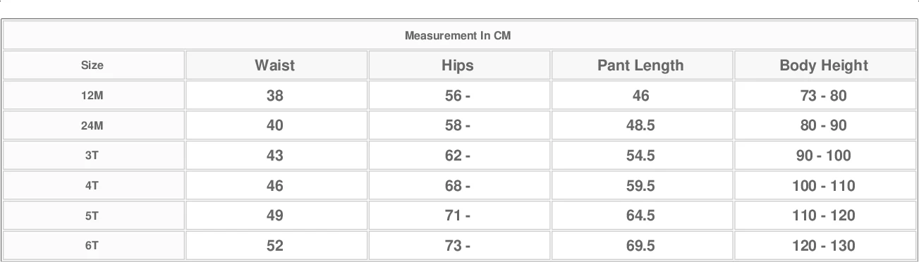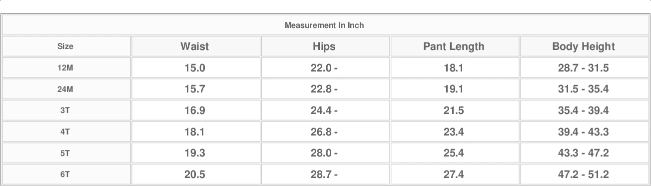 Size | Waist | Hips | Pant Length | Body Height |