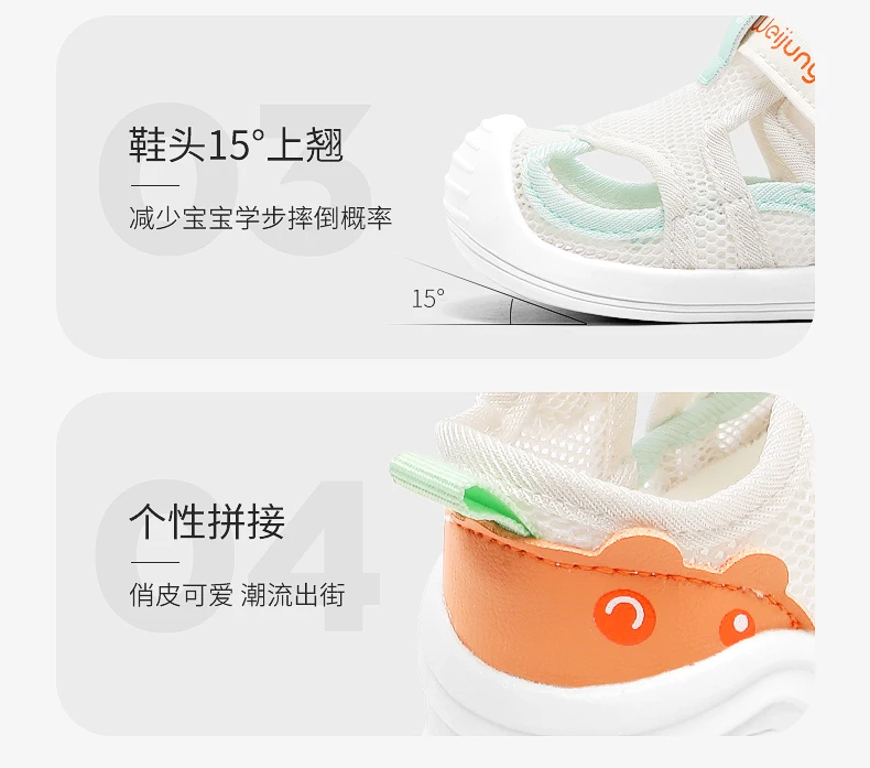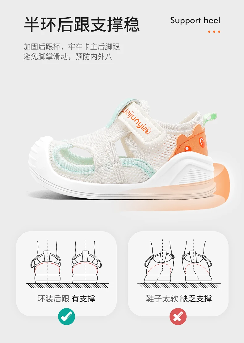 Toddler sandles designed with protective toe cap can protect kids’ toes,so kids can play indoors and outdoors with confidence