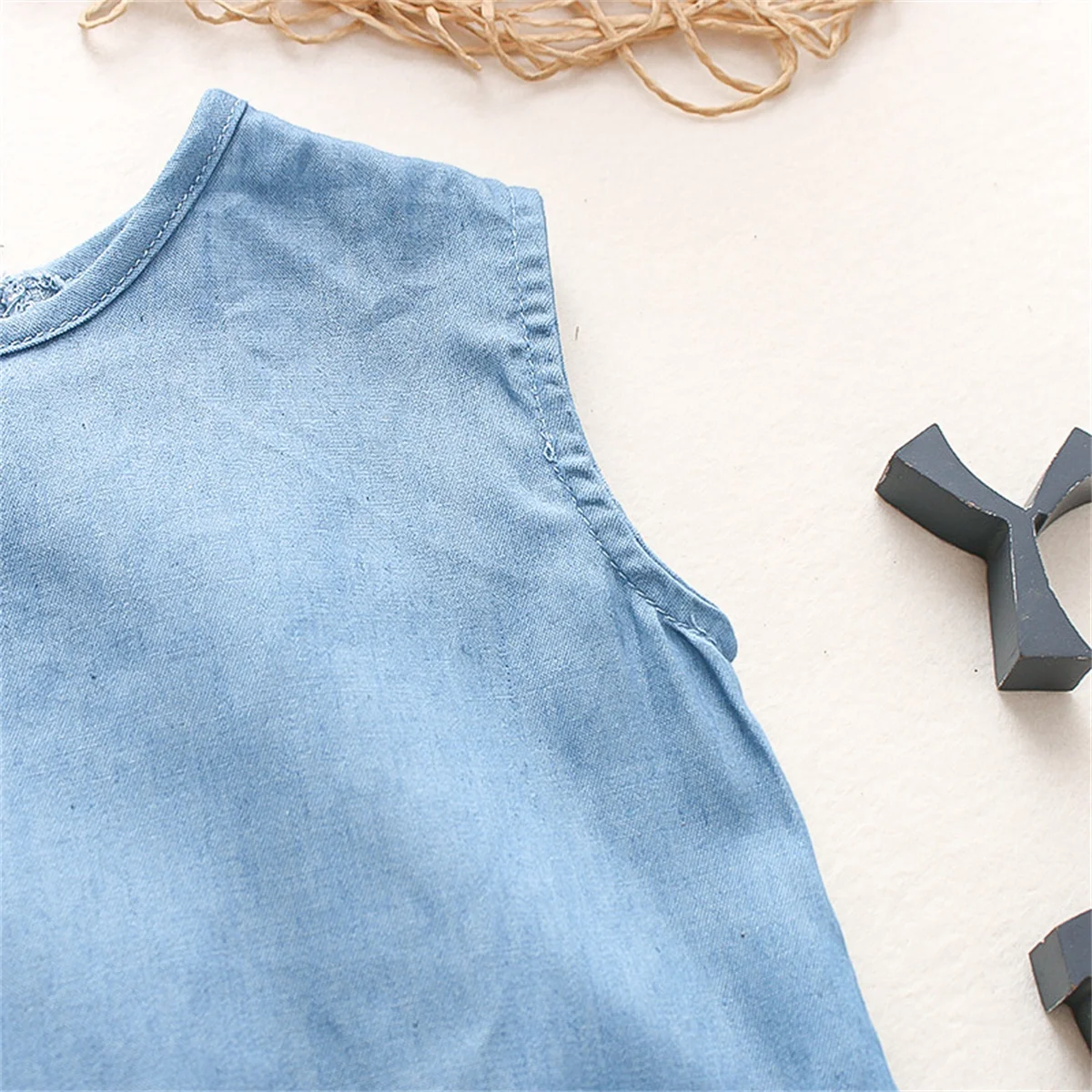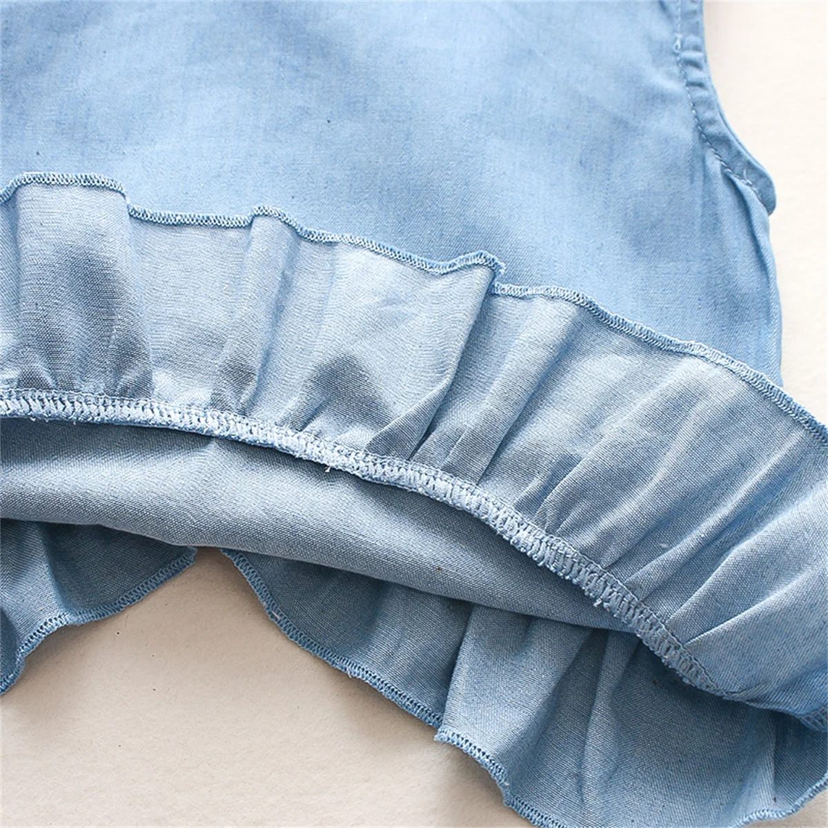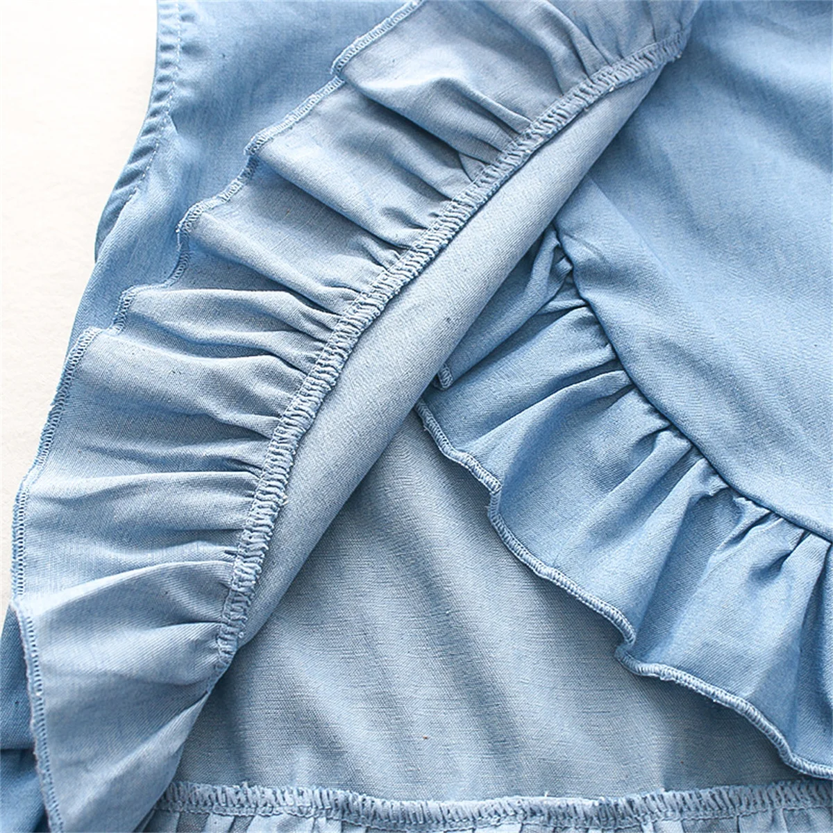 Summer Girls’ Fashion Top New Ruffle Edge Denim Sleeveless Solid Color Casual Sweet Versatile Clothes