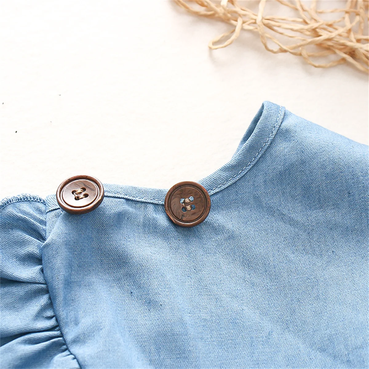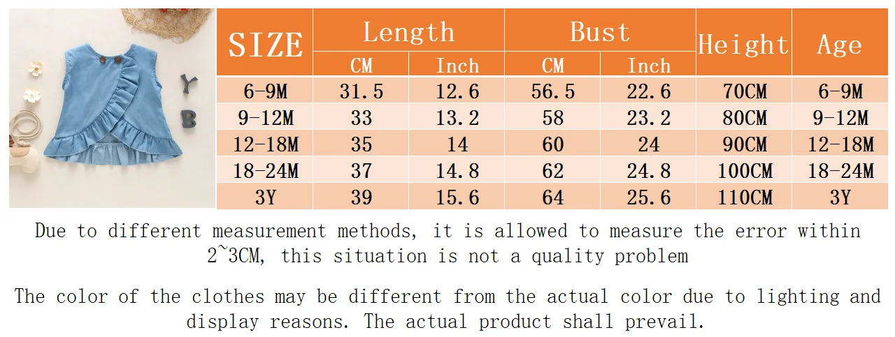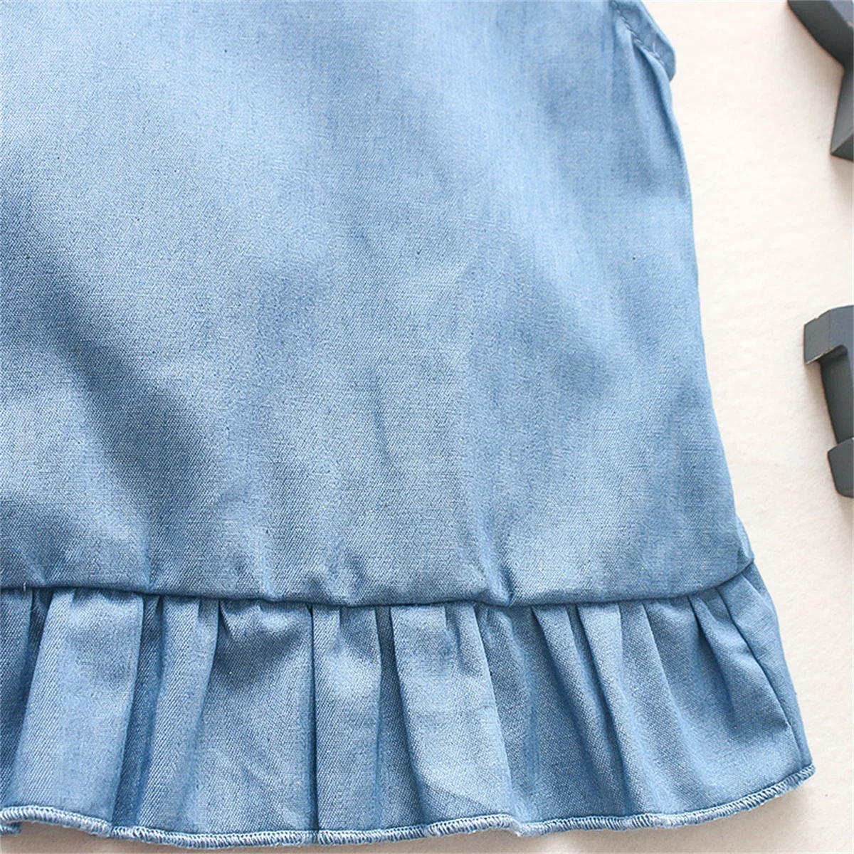 Summer Girls’ Fashion Top New Ruffle Edge Denim Sleeveless Solid Color Casual Sweet Versatile Clothes