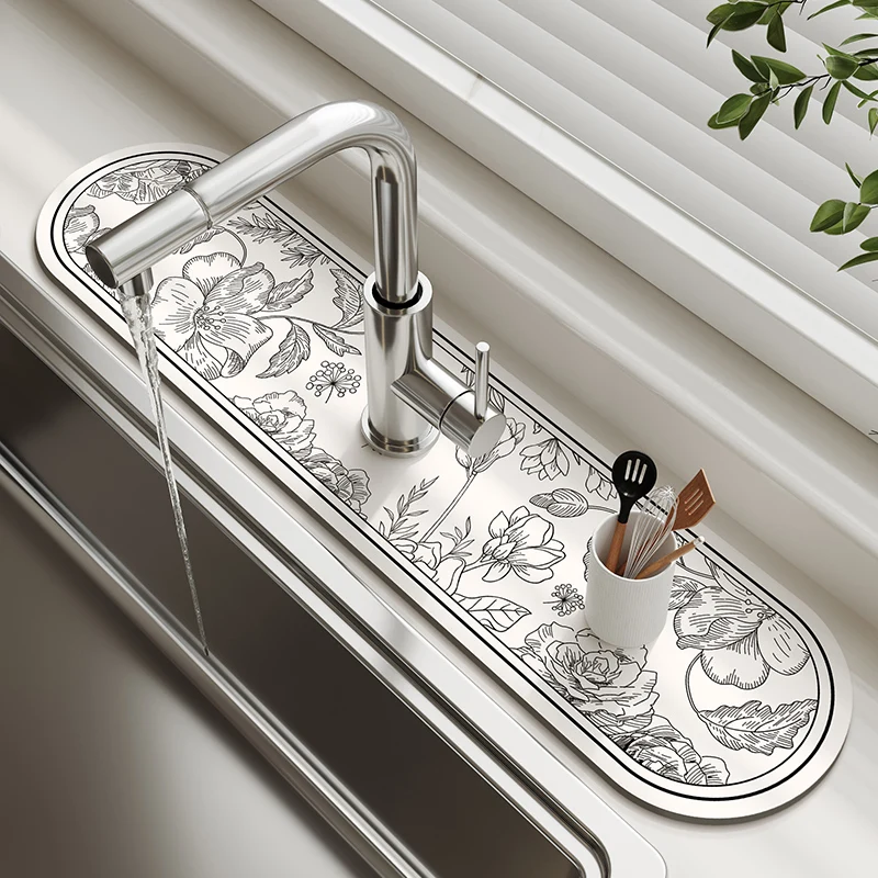 Home Home Kitchen Table Decoration & Accessories Super Absorbent Sink Faucet Mat Kitchen Diatom Mud Drain Pad Table Mat Toilet Pad Non-slip Anti-mildew Mat Countertop Dining