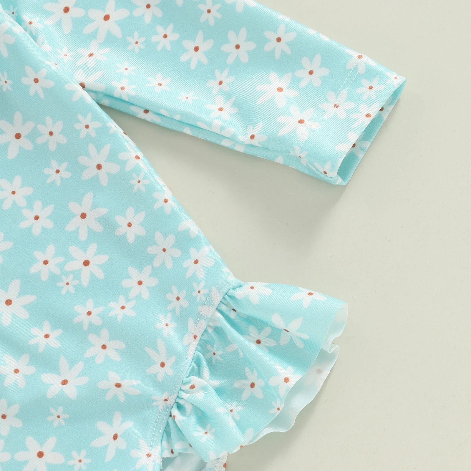 Toddler Girls Rash Guard Swimsuit Rompers Long Sleeve Floral Print Baby Ruffles Bathing Suit Swimwear with Swim Cap