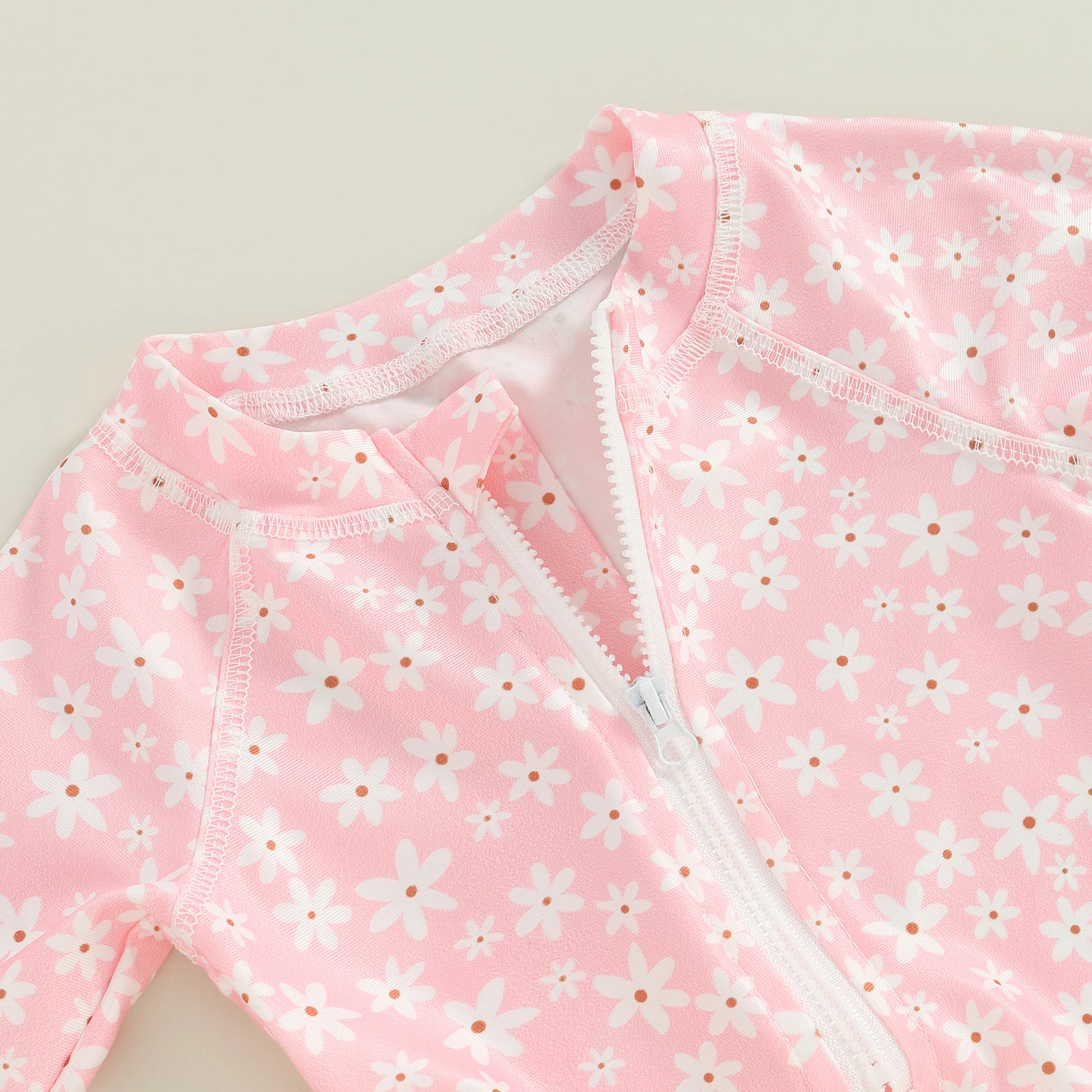 Toddler Girls Rash Guard Swimsuit 2pcs Bathing Suit + Sun Hat Set Infant Long Sleeve Floral Print Ruffles Swimwear with Swim Cap 5