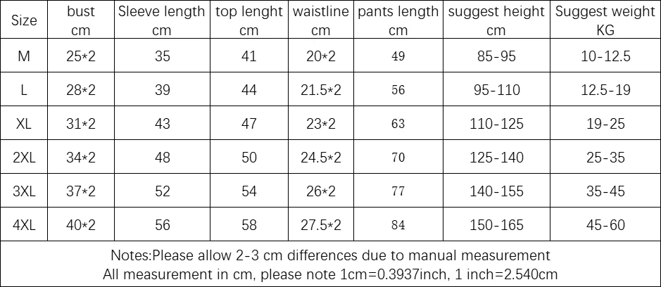 Size | bust | Sleeve length | top lenght | waistline | pants length | suggest height | Suggest weight |