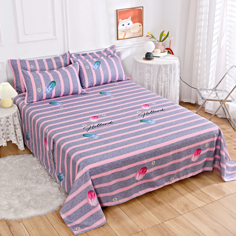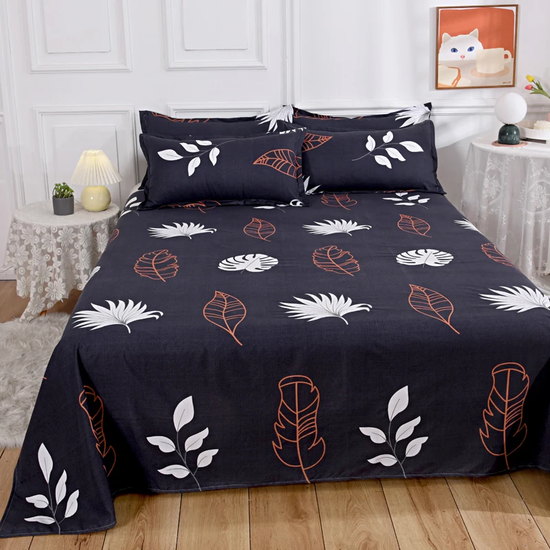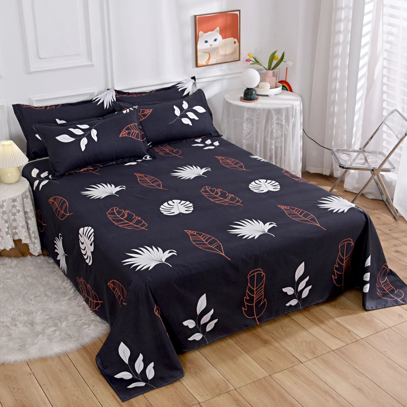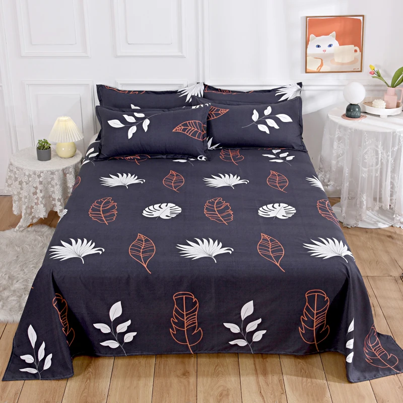 Watercolor Floral Pattern Bed Sheet Set 100% Cotton Flat Sheet with Pillowcases 3Pcs High Quality Queen King Size Bedding Set 1