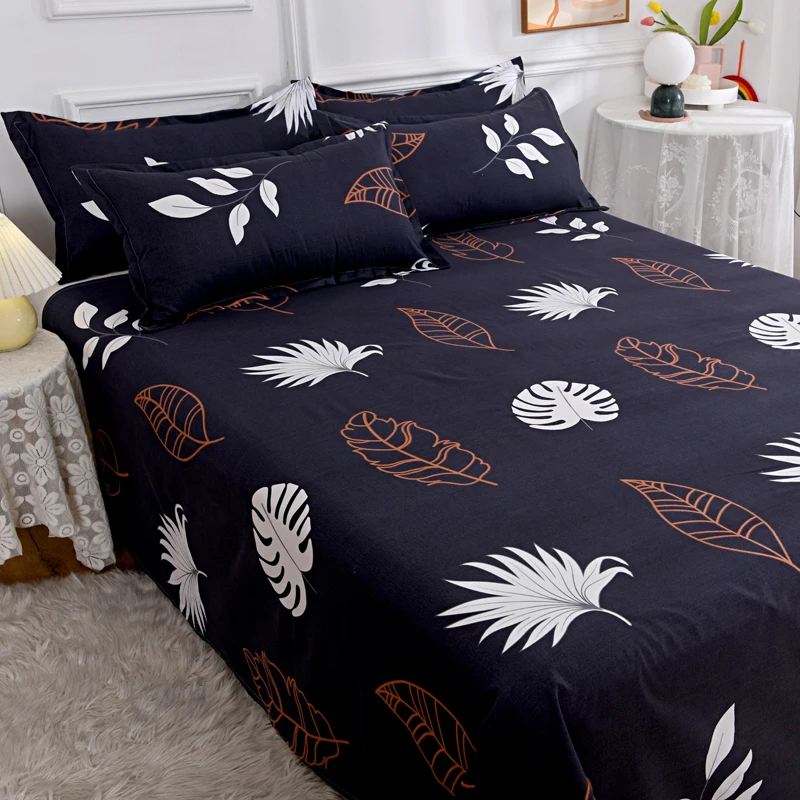 Home Home Bedding Sheet Sets Tropical Monstera Leaves Flat Sheet with 2 Pillowcase Soft Comfortable Botanical Feather Print Bed Sheet Set (No Fitted Sheet)