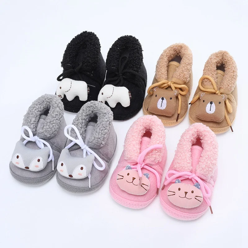 Winter Baby Booties Shoes Cartoon Animal Warm Baby Boy Girl Shoes Snow Boots First Walkers Soft Bottom Infant Crib Shoes