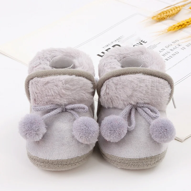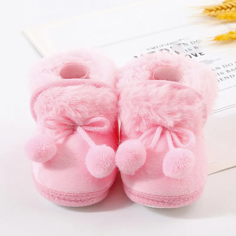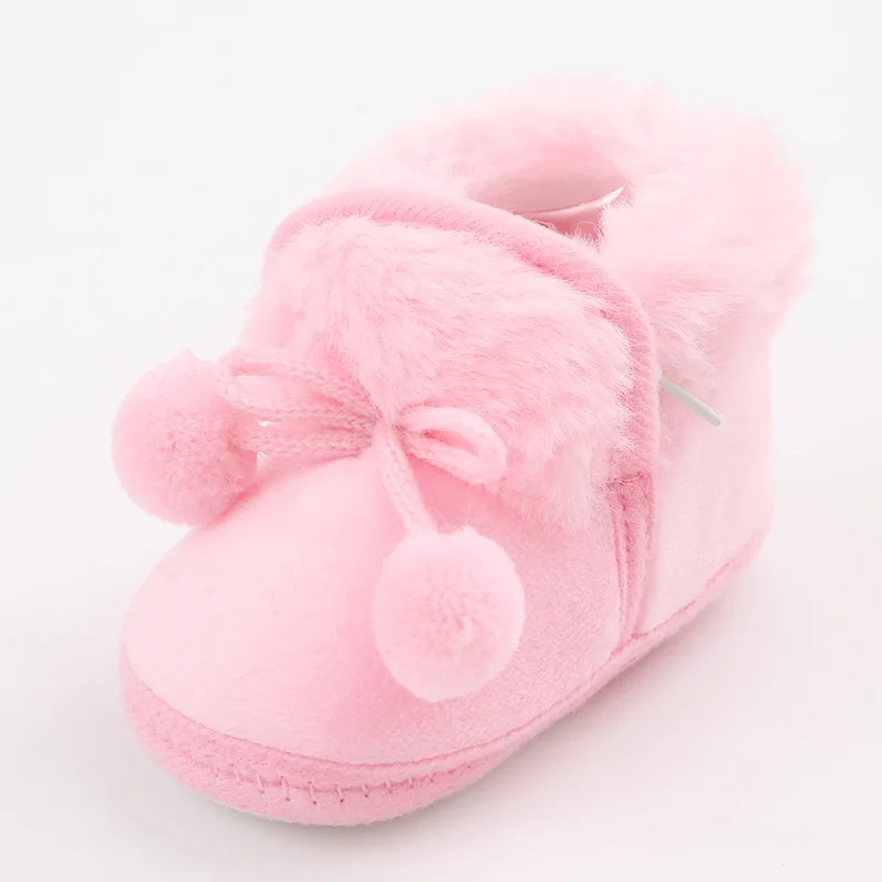 Winter Snow Baby Boots Faux Fur Warm Fluff Balls Indoor Cotton Soft Sole Infant Newborn Toddler Baby Shoes 0-18M