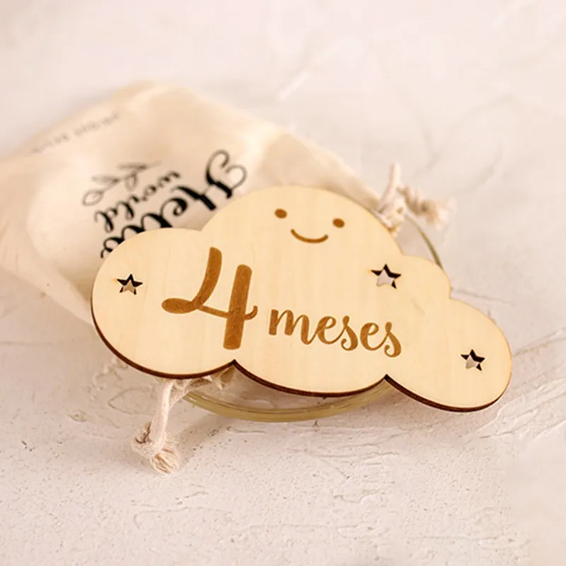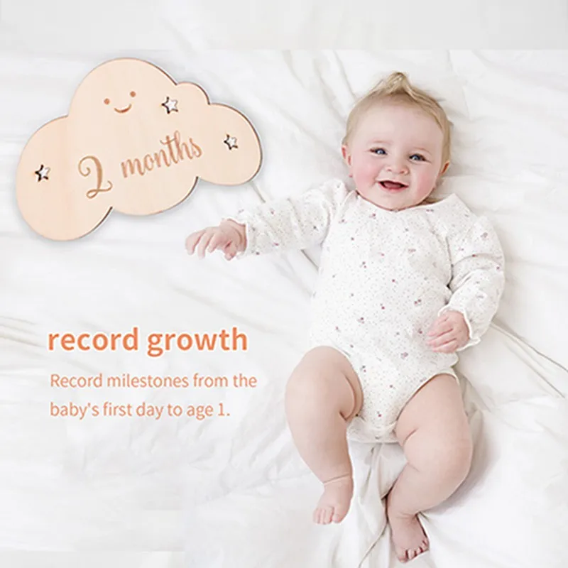 Wooden Baby Milestone 0-12 Months Baby Newborn Cartoon Cloud Shape Photography Accessories Growing Up Card Gifts For Newborns