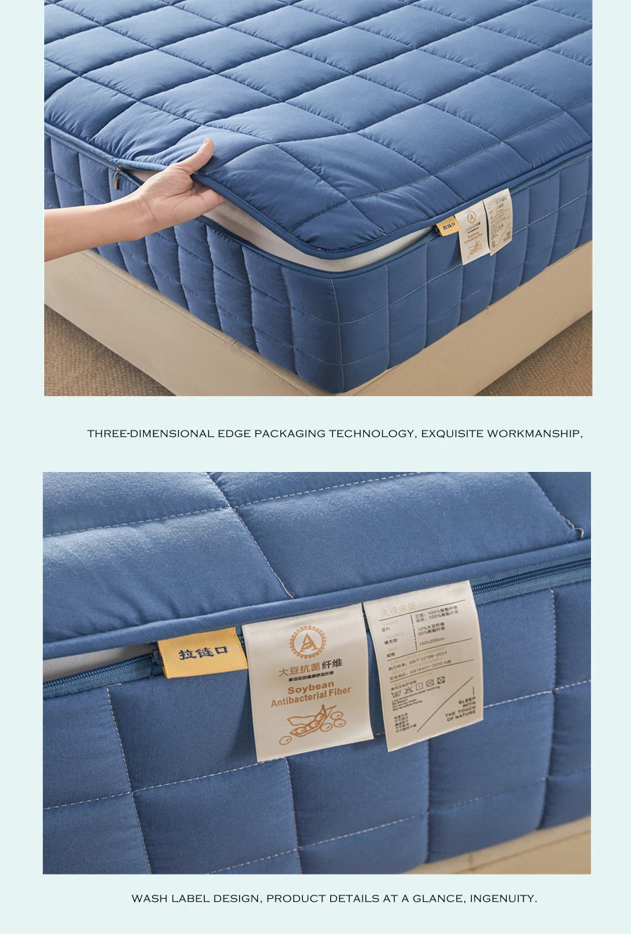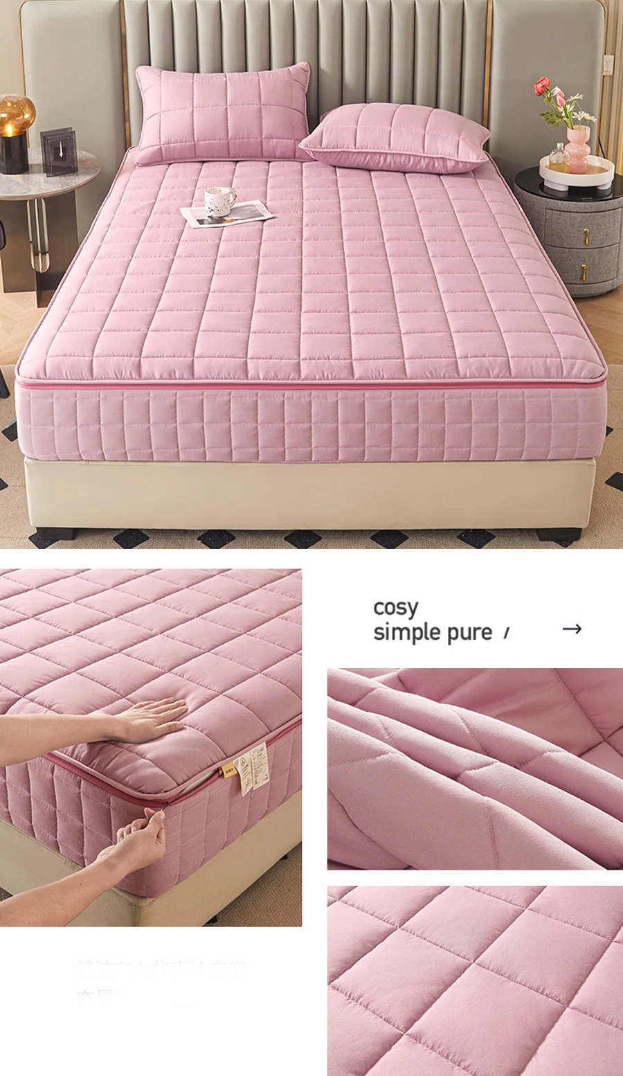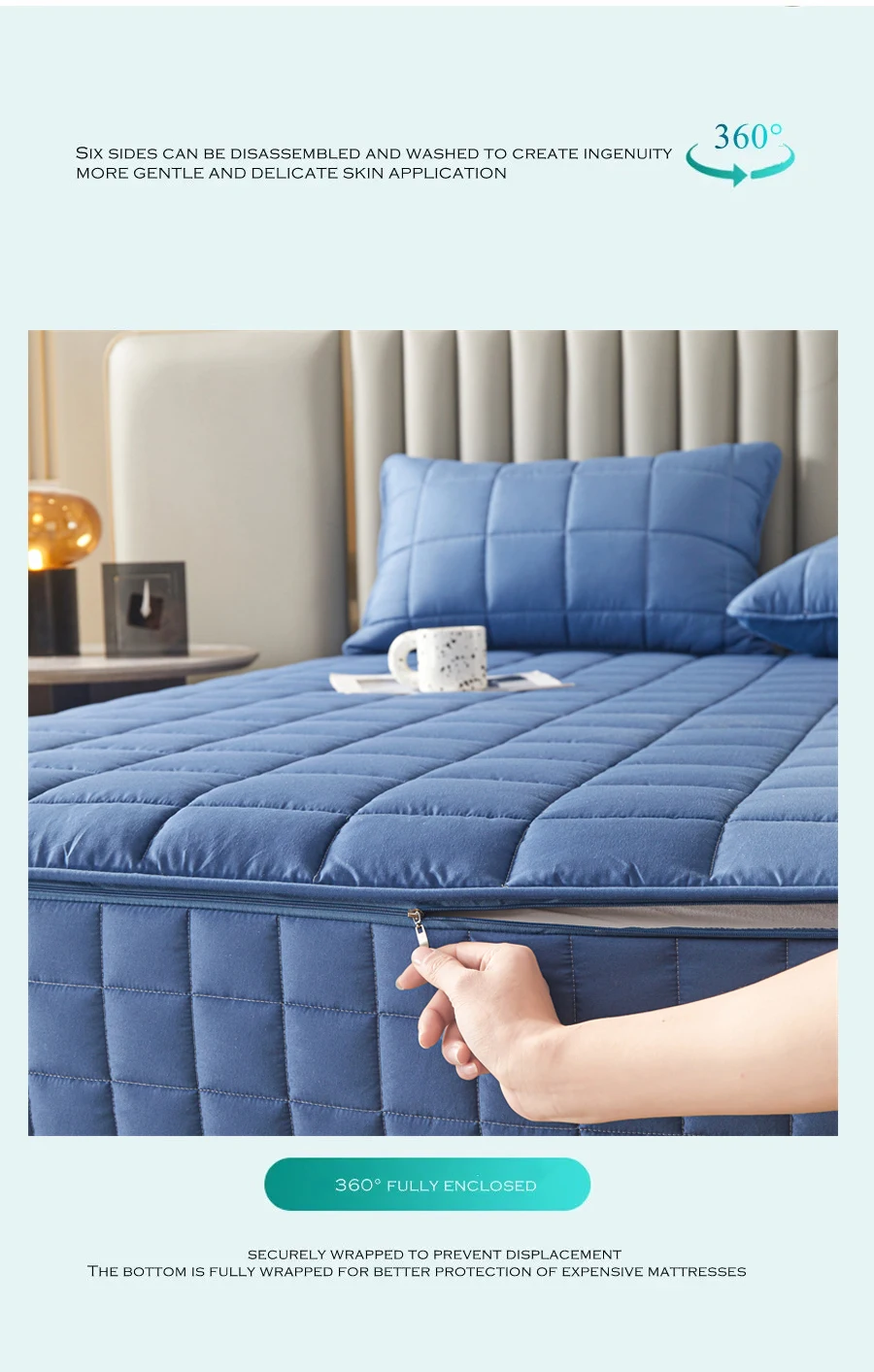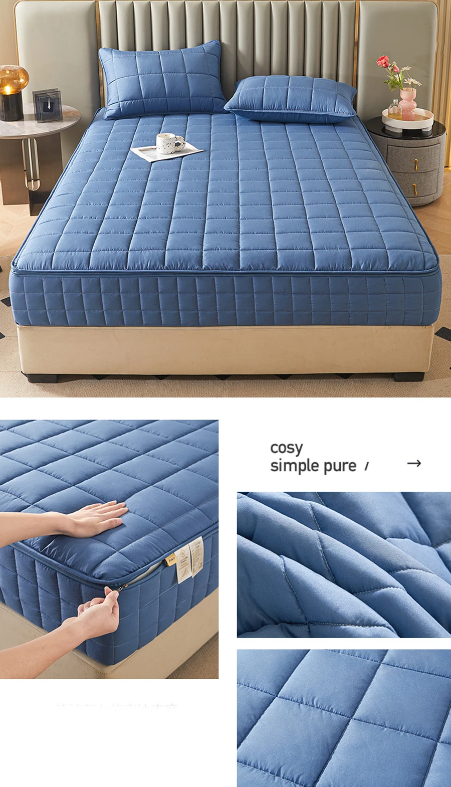 WOSTAR Mattress protector cover with zipper quilted thicken 360° fully enclosed luxury double bed couple sheet protection pad