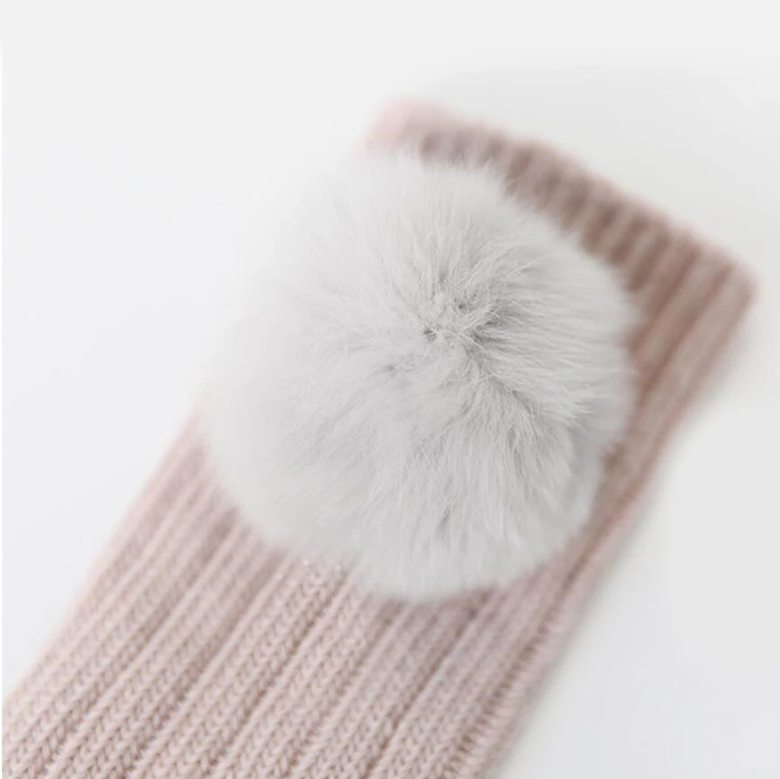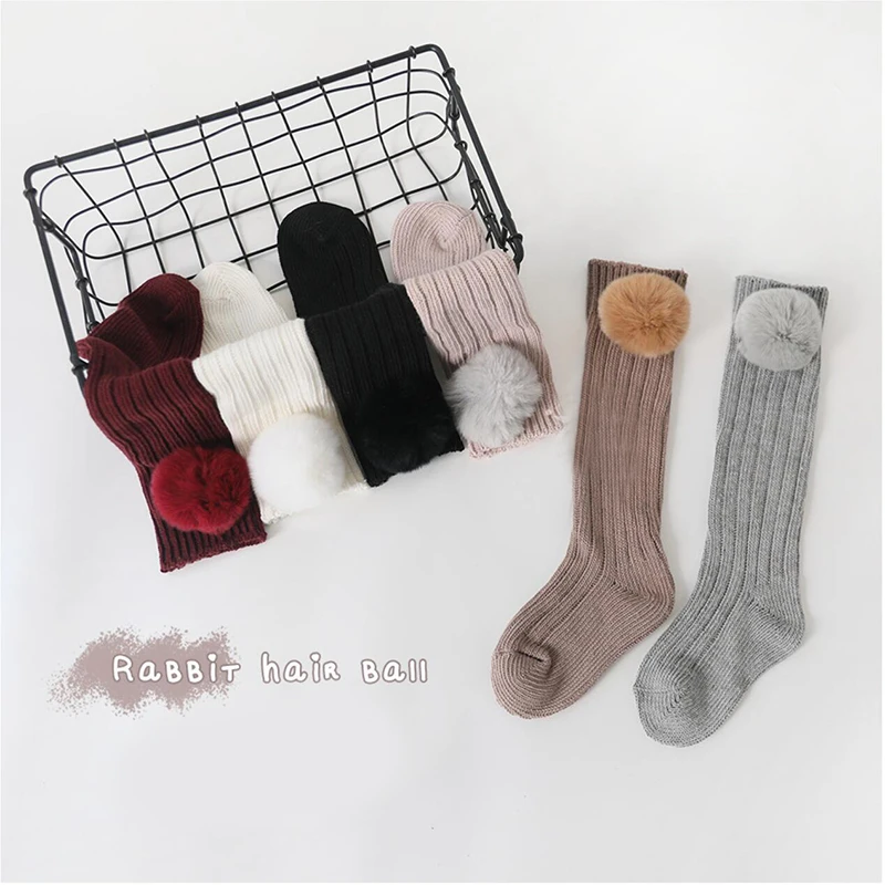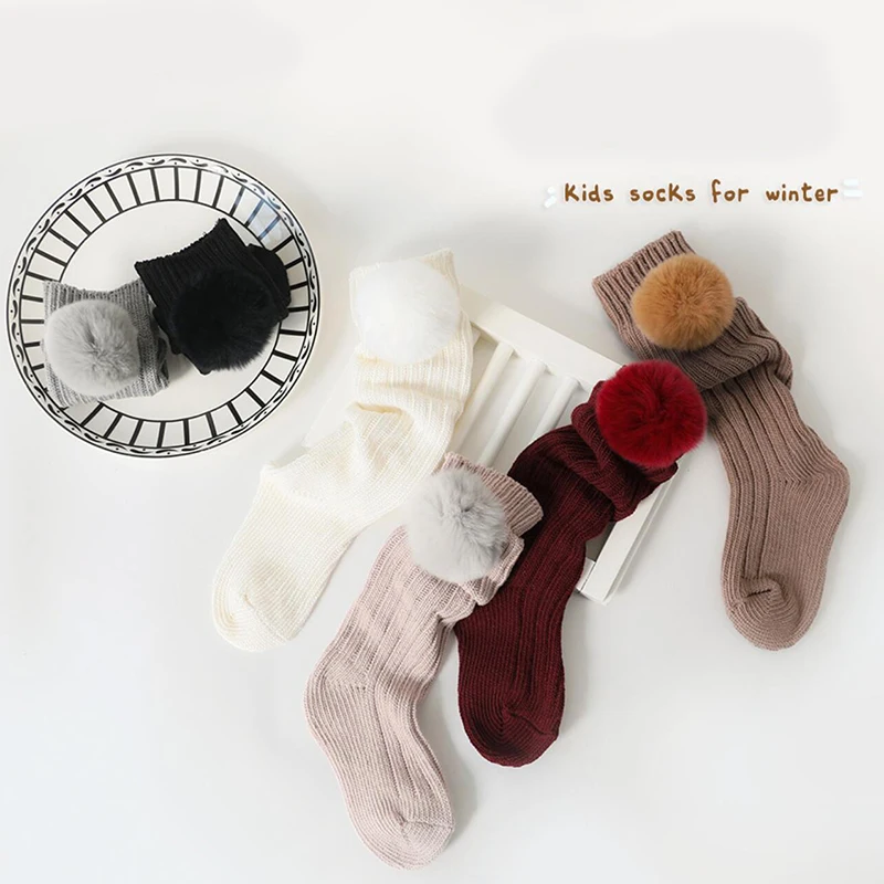 Xmas Winter Newborn Baby Girls Socks Big Pompom Kids Knee High Long Socks Soft Warm Cotton Knit Leg Warmer Children Calcetines
