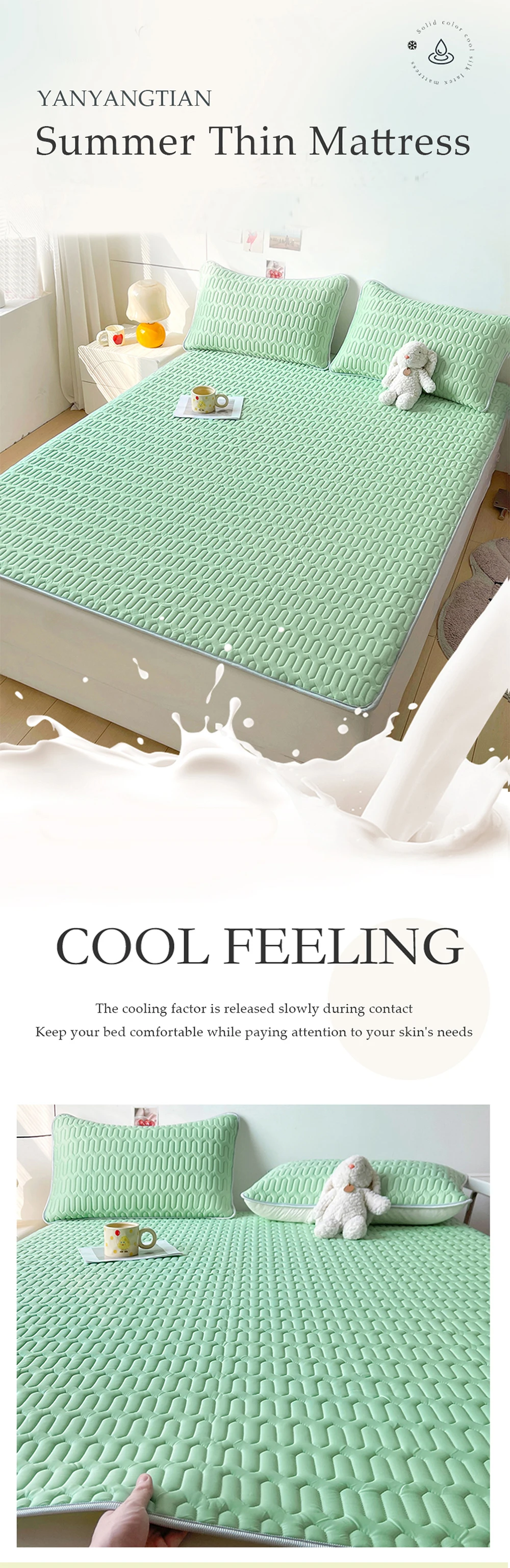 YanYangTian New Solid color Simple Mattress Luxury Foldable latex mattress bedroom Bedspread Ice silk mat 150 single Bed cover 4